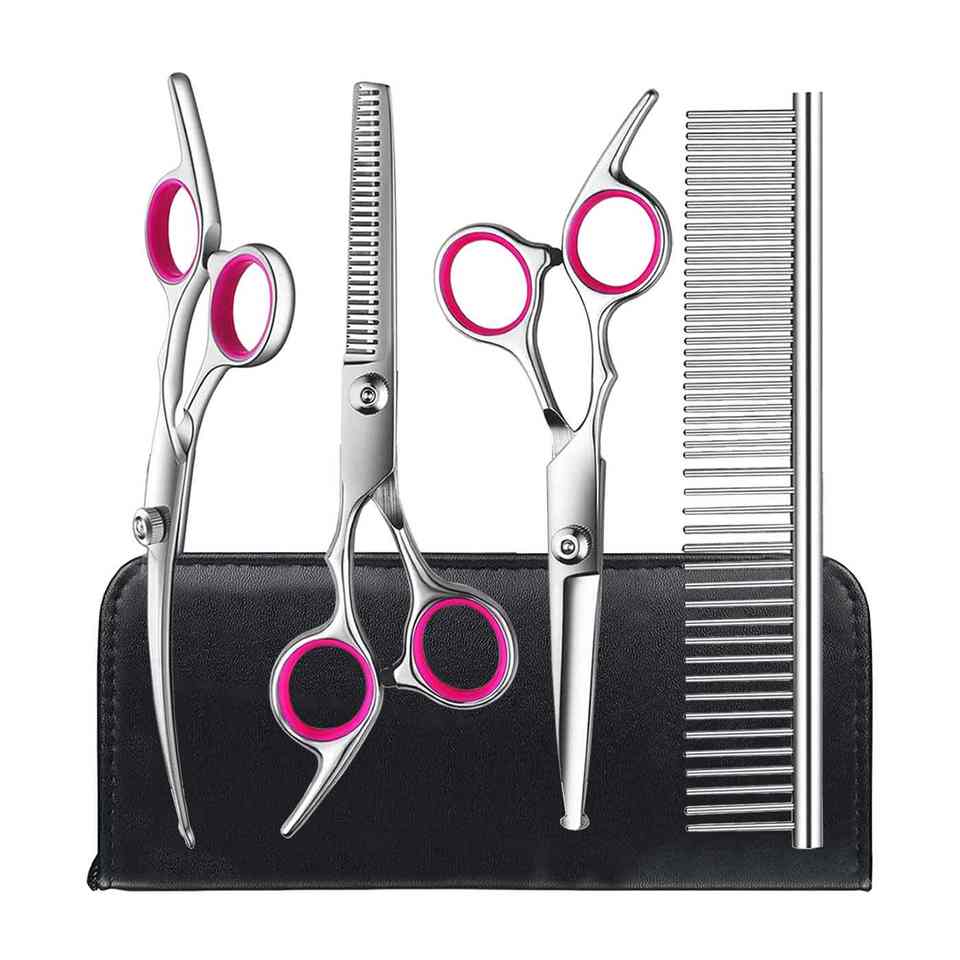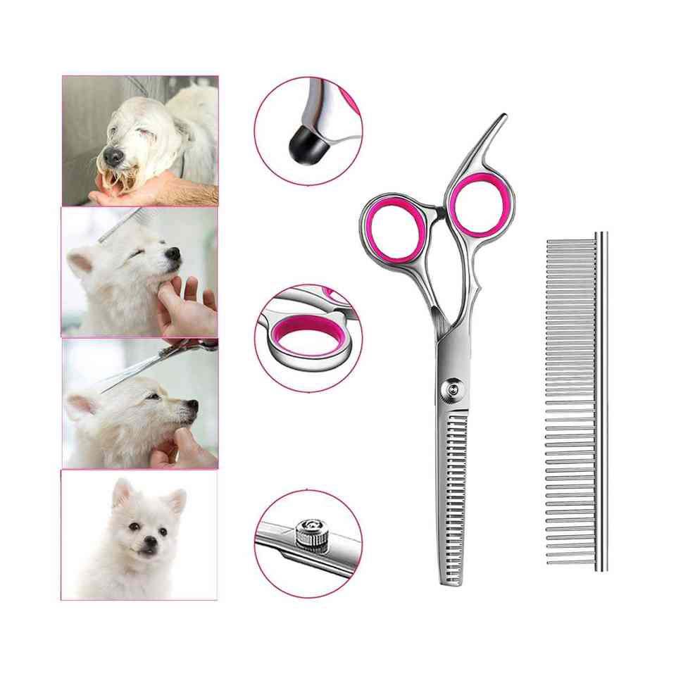ชุดกรรไกรตัดขนสัตว์เลี้ยงแบบมืออาชีพหวีสางผมสำหรับตัดขนสัตว์เลี้ยงแบบบางพร้อมหวีสางขนสัตว์เลี้ยงแบบสแตนเลส