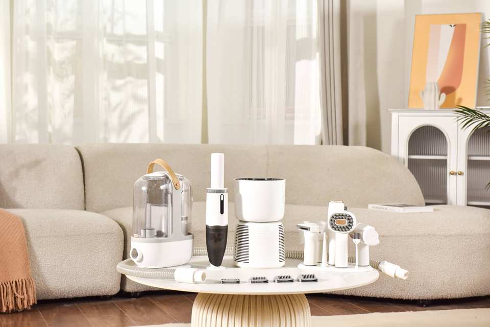 ชุดผมสูญญากาศกรูมมิ่งสัตว์เลี้ยงมืออาชีพการออกแบบอเนกประสงค์ที่ยั่งยืนสําหรับการตัดสุนัขเป่าผมดูดทําจากพลาสติก
