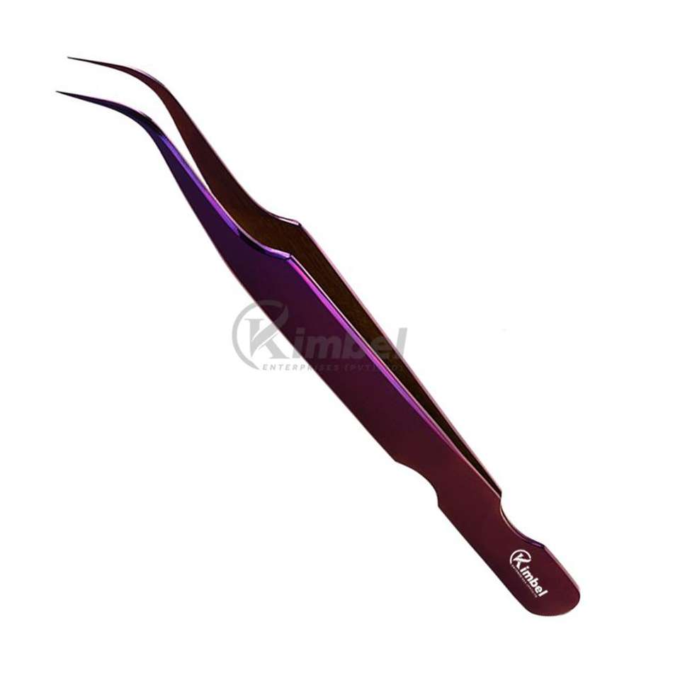แหนบสแตนเลสพลาสม่าสีม่วงสำหรับมืออาชีพสำหรับการต่อขนตาแบบโค้งที่แข็งแรงปรับแต่งได้