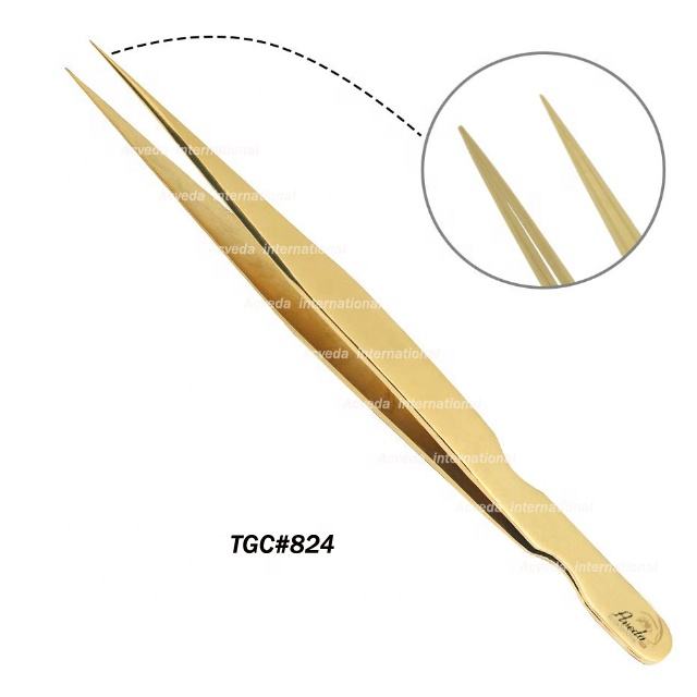 Professional Plasma Titanium Golden Eyelash Tweezers Hand Crafted Japanese Stainless Steel 45 Angular Tip Pointed Tip Aveda
