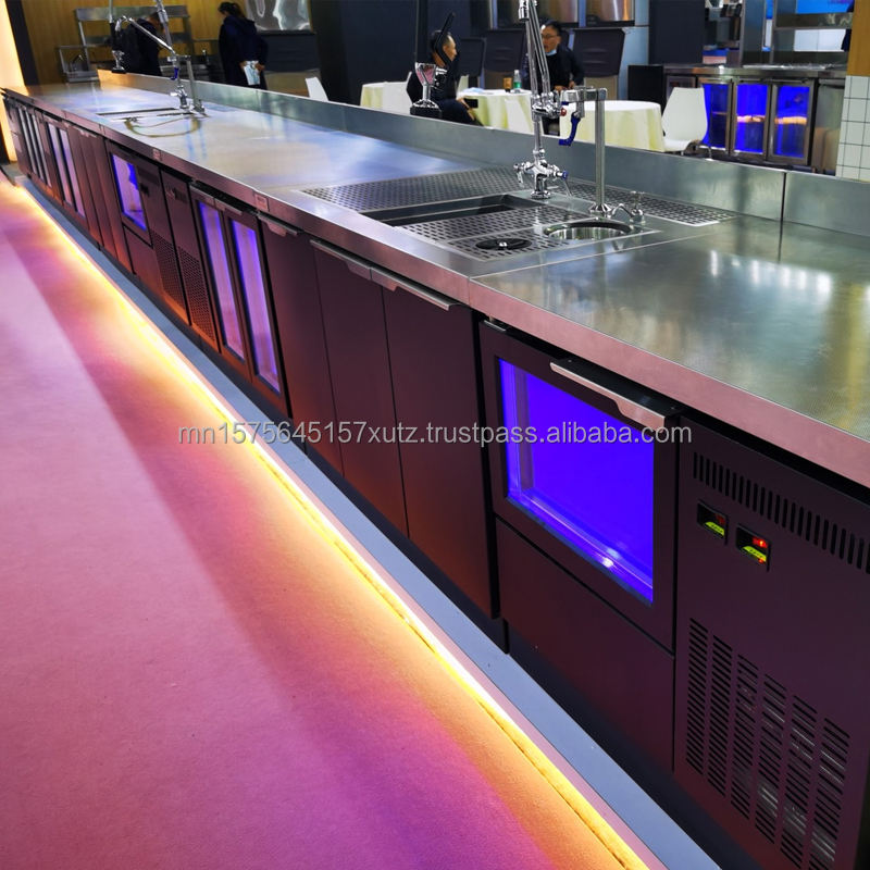 สถานีผสมสแตนเลสขัดเงาอย่างมืออาชีพแบบพกพา พร้อมที่เก็บของ สำหรับใช้ในบ้าน บาร์ หรือร้านกาแฟ