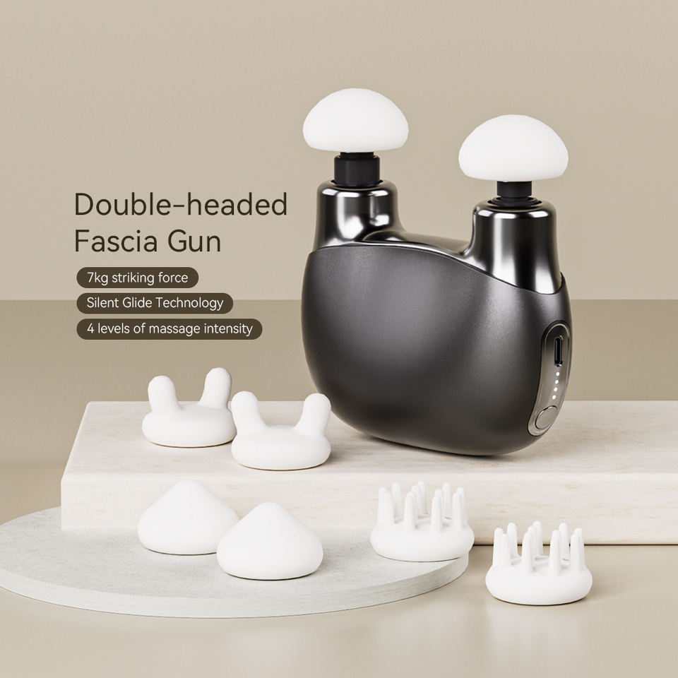 ปืนนวดกล้ามเนื้อแบบพกพาขนาดเล็ก ใช้ไฟฟ้า นวดเนื้อเยื่อลึก แบบสองหัว สำหรับนวดตัวและกล้ามเนื้อ