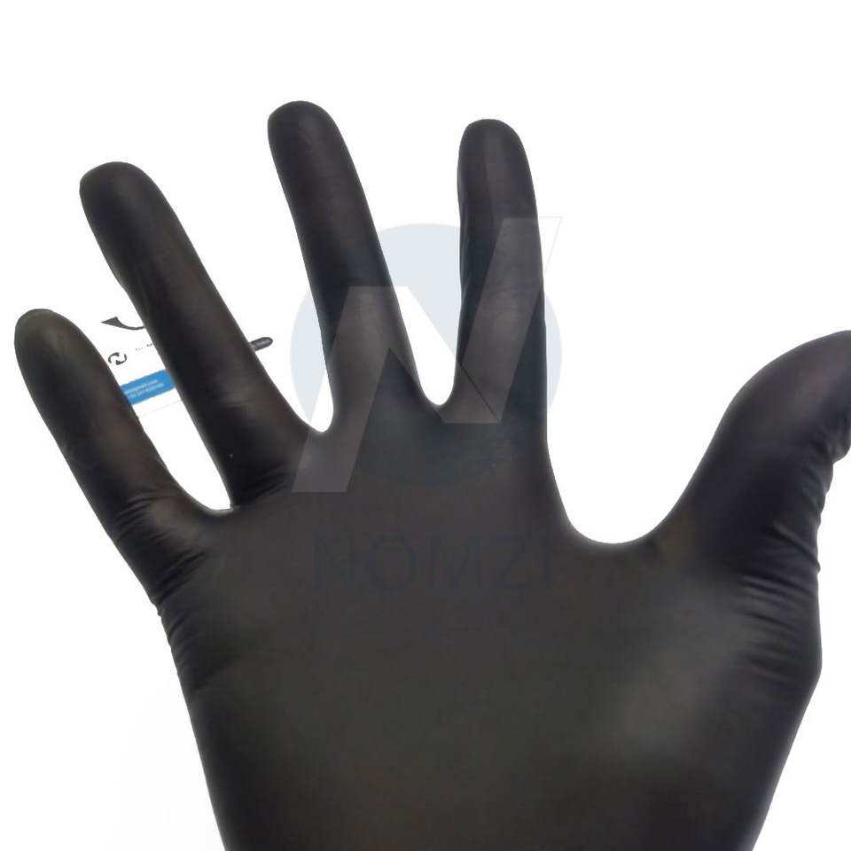 ถุงมือไนไตรล์ตัดผมแบบใช้แล้วทิ้งปราศจากผงสีดำทนต่อสารเคมีสำหรับช่างตัดผมและกรรไกรเสริมสวย