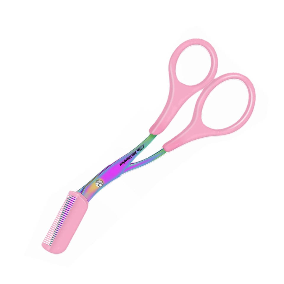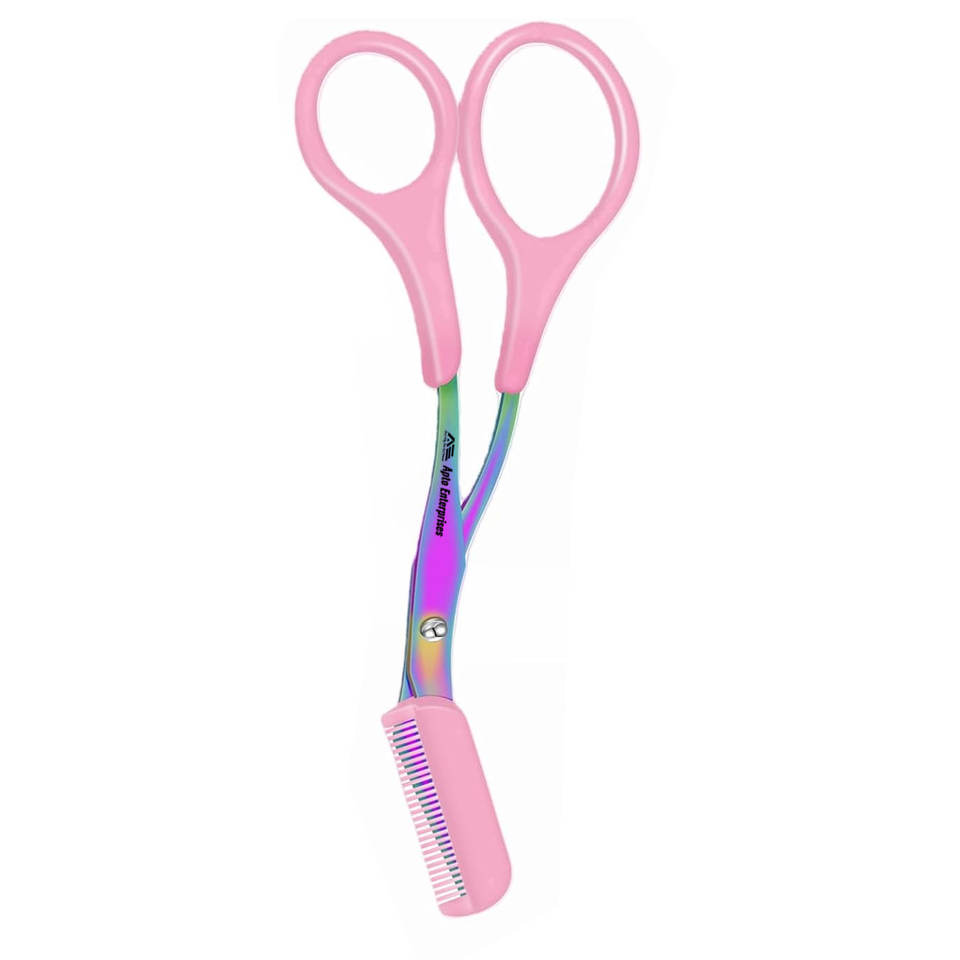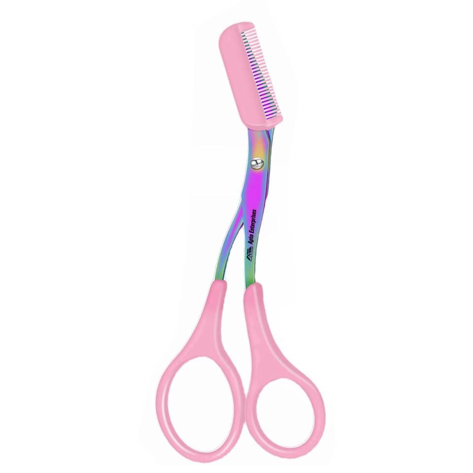 ชุดกันคิ้วสเตนเลสสตีลสีชมพู2ชิ้นความแม่นยำระดับมืออาชีพกรรไกรตัดคิ้วกันลื่นพร้อมหวี