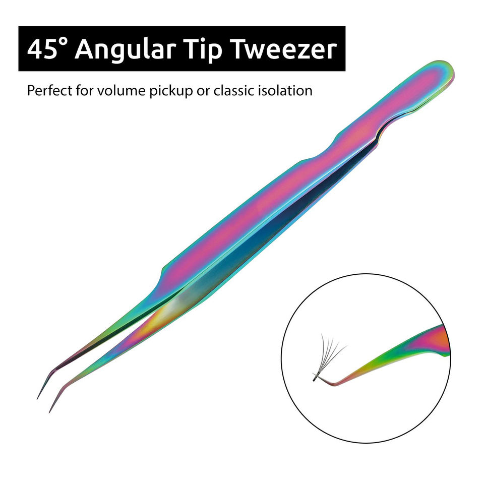 แหนบต่อขนตาทำจากเส้นใยสีดำรุ่นเจ็ท45องศาความแม่นยำระดับมืออาชีพเครื่องมือทำจากสเตนเลส