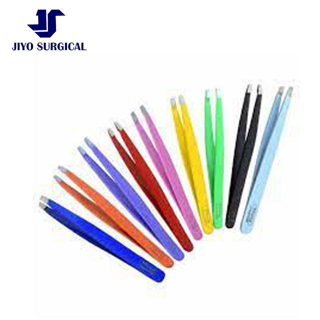 แหนบถอนคิ้วสเตนเลสปลายเอียงแม่นยำระดับมืออาชีพเครื่องมือกำจัดขนสำหรับร้านเสริมสวยและใช้ในบ้าน