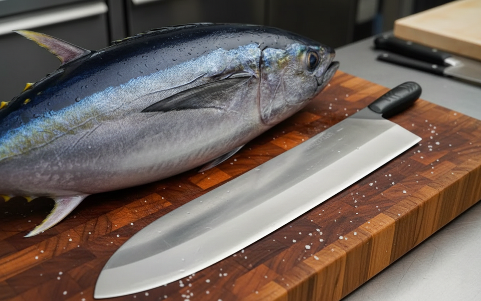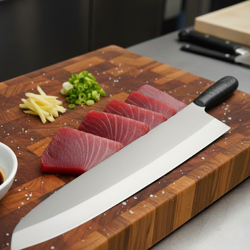 มีดแล่ปลาทูน่าแบบมืออาชีพ คุณภาพพรีเมียม ยาว 15 นิ้ว ด้ามไม้เป็นมิตรกับสิ่งแวดล้อม ใบมีดฟอร์จ ทนทาน ล้างในเครื่องล้างจานได้