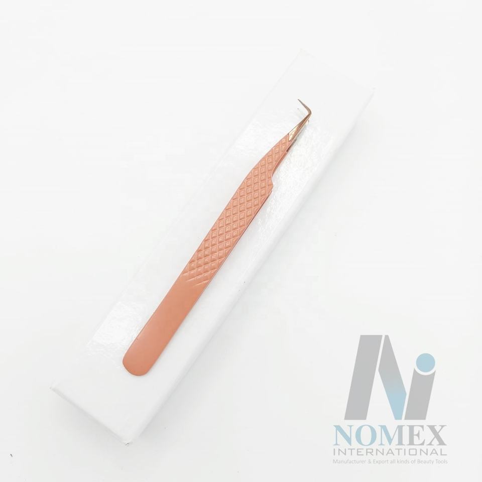 แหนบต่อขนตาปลอมทำจากสเตนเลสสตีลแข็ง90องศาสำหรับมืออาชีพปลายแหลมเคลือบด้วยผง