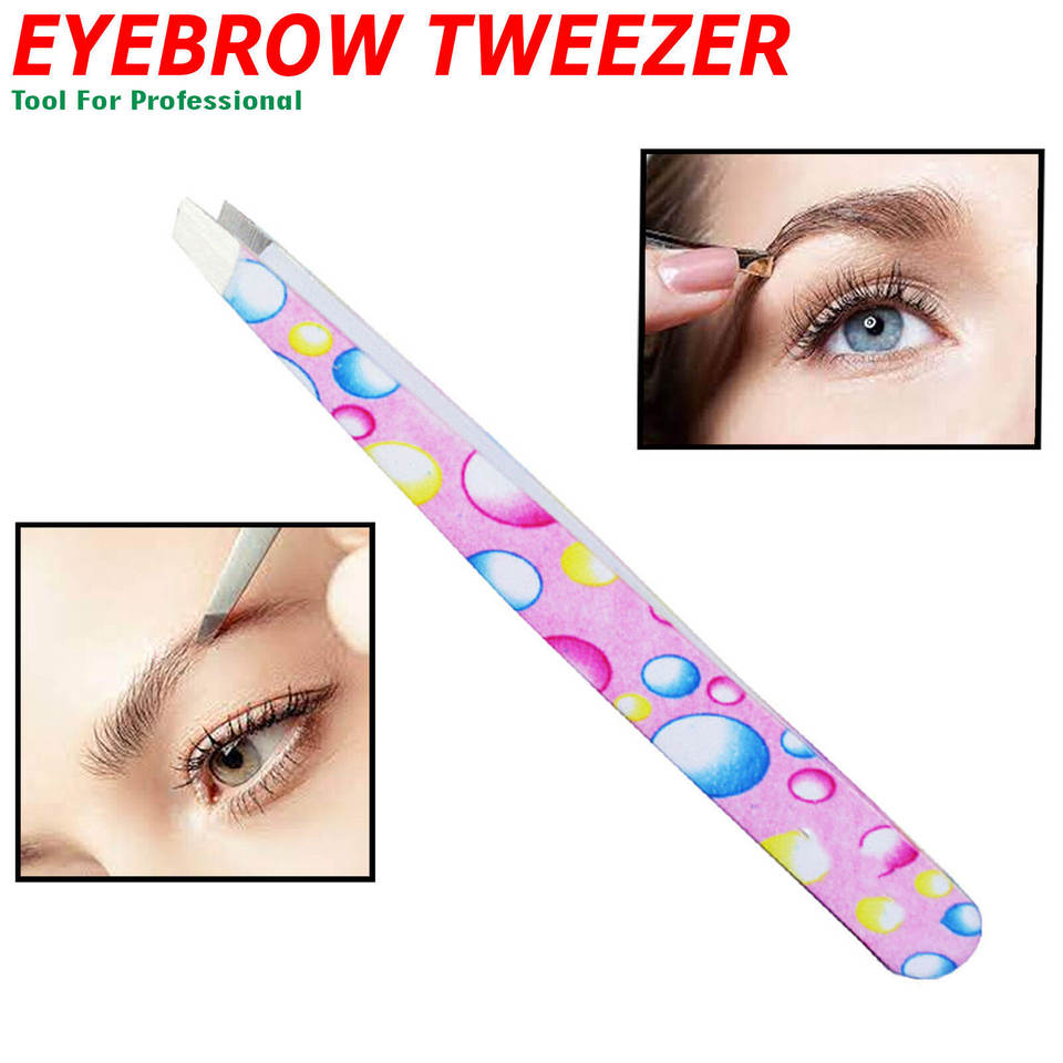 แหนบถอนขนคิ้วแบบเอียงทำจากสเตนเลสสตีลอุปกรณ์แต่งขนเพื่อความงามพร้อมเครื่องมือที่มีความแม่นยำหลายสีสำหรับคิ้ว
