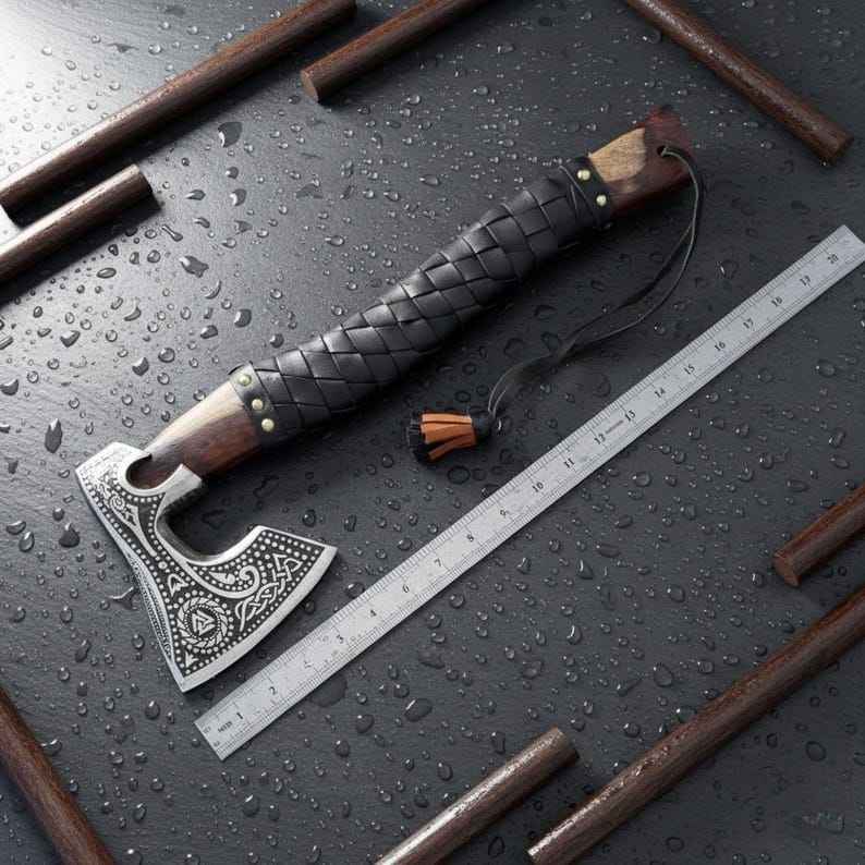 ขวานไวกิ้งคุณภาพสูงระดับมืออาชีพ ขายส่ง พรีเมียม ด้ามไม้ เหล็กกล้าคาร์บอนสูง ตีขึ้นรูป สำหรับงานอุตสาหกรรม พร้อมปลอก