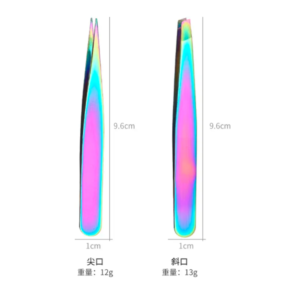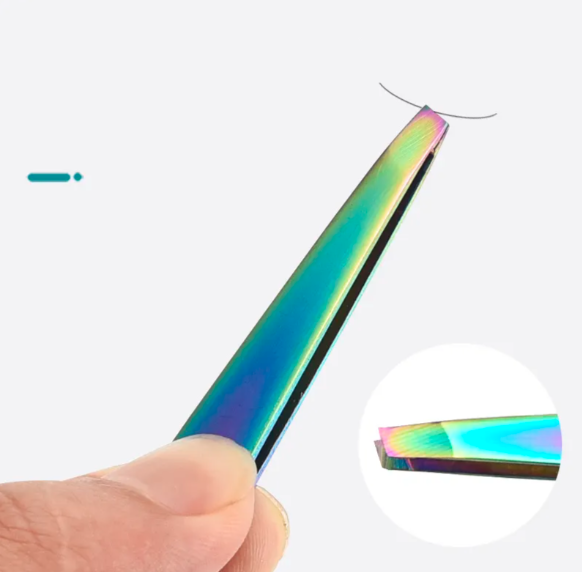 Professional Private Label Stainless Steel Eyebrow Eyelash Extension Tweezers Rainbow Color Reusable Lightweight Hair Removal