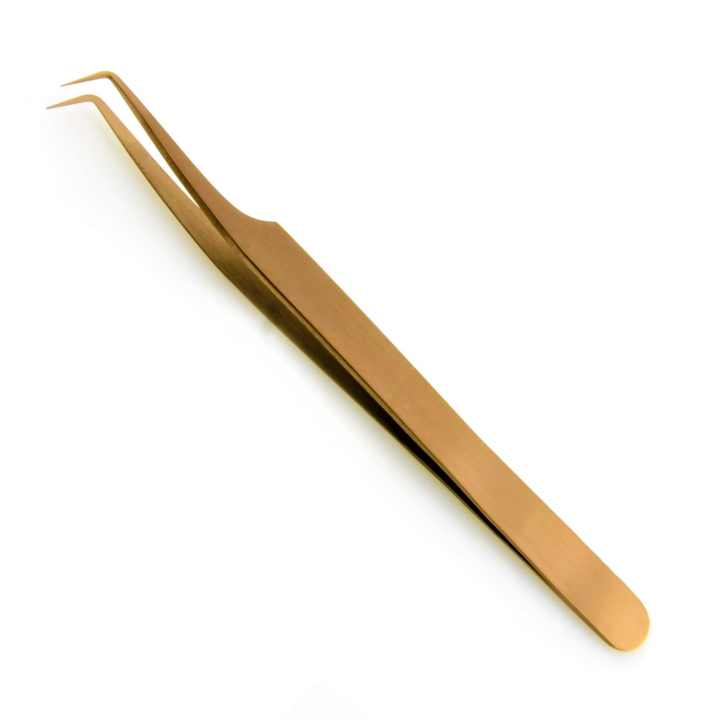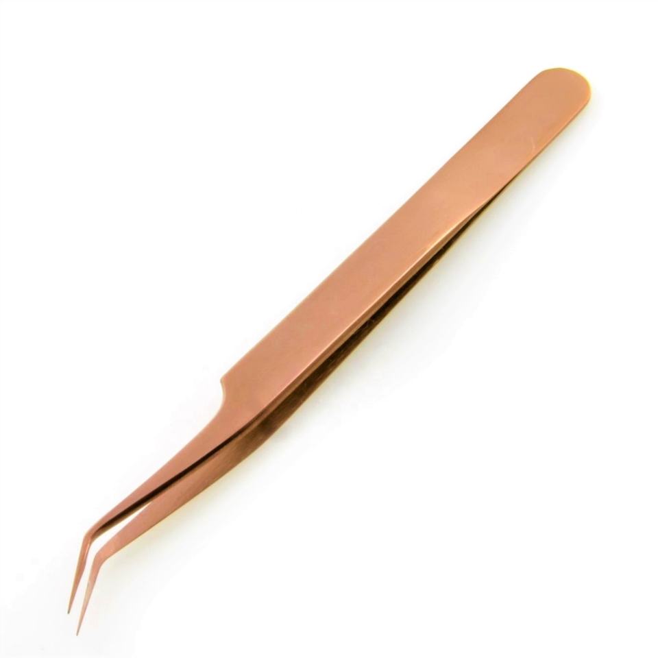 แหนบต่อขนตาสแตนเลสสีโรสโกลด์พลาสม่า90องศา7มม. ด้ามจับโค้งแหลมที่สุด