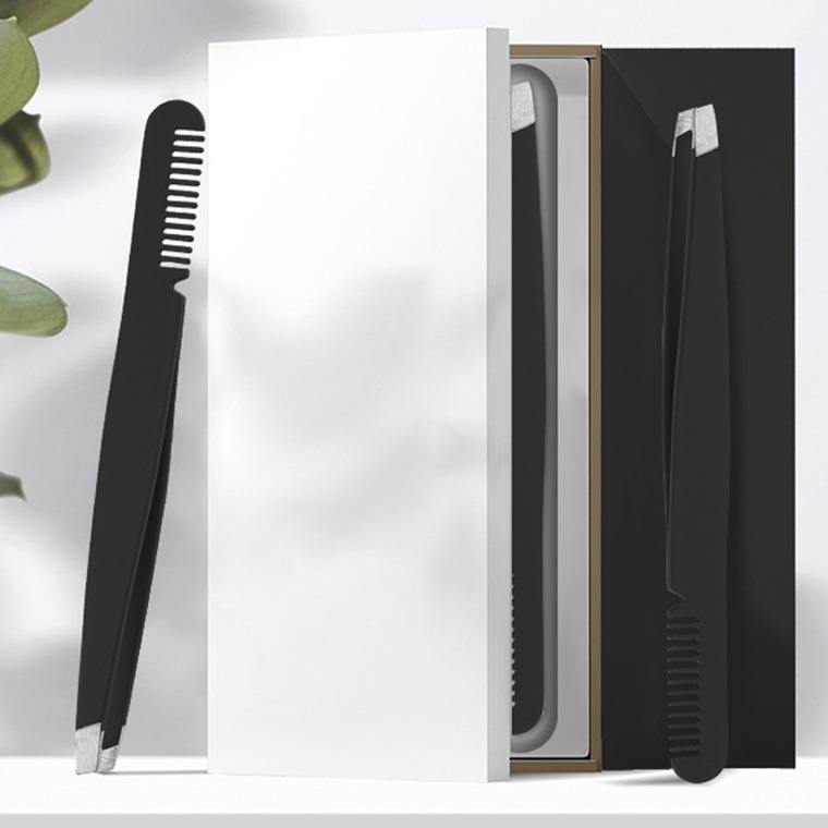 แหนบถอนคิ้วปลายเอียงสีดำคุณภาพระดับมืออาชีพทำจากสเตนเลสสตีลปรับแต่งโลโก้ได้ตามต้องการ