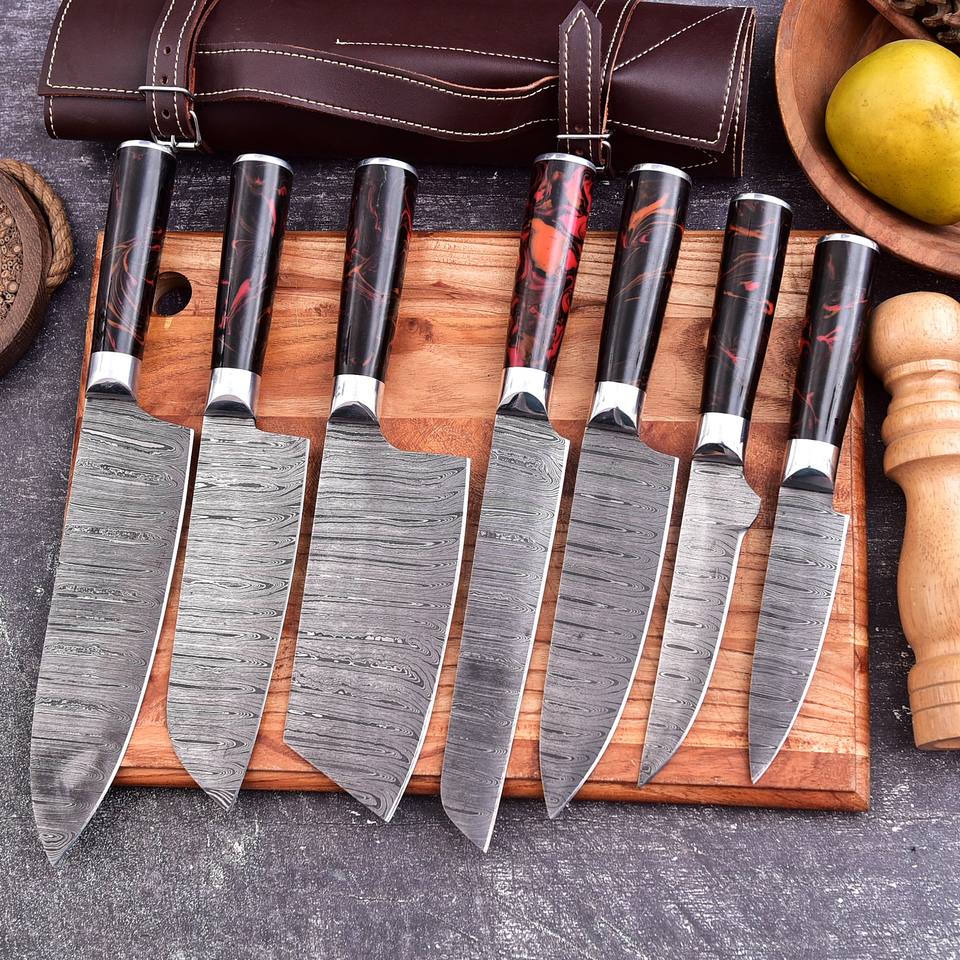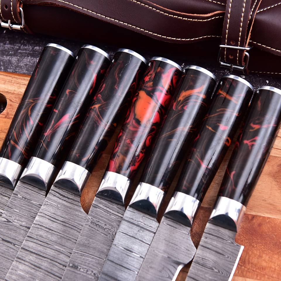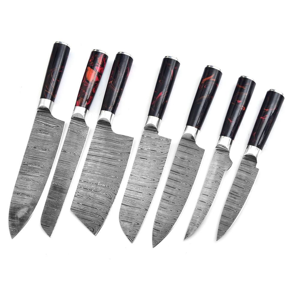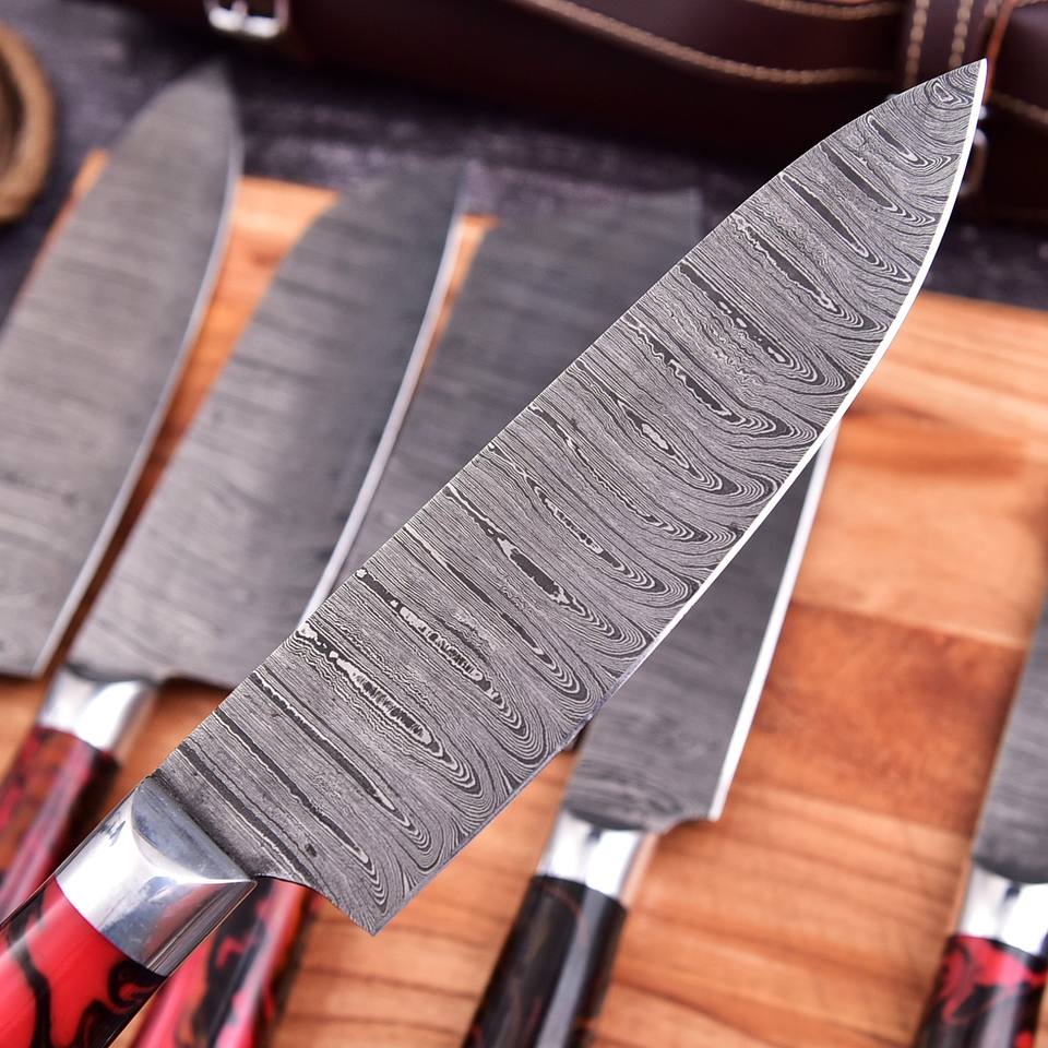 ชุดมีดเชฟคุณภาพระดับมืออาชีพและชุดอุปกรณ์ครัวสำหรับงานหนัก สำหรับใช้ในบ้าน ชุดเชฟพร้อมด้ามจับสลักลายบนใบมีด