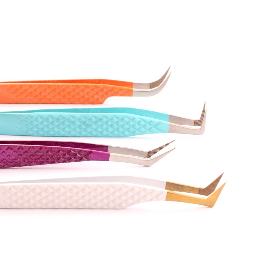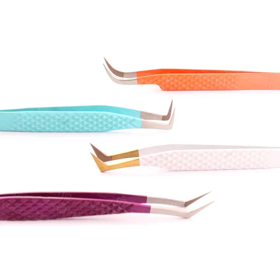 แหนบต่อขนตาแบบด้ามจับเพชรคุณภาพระดับมืออาชีพทำจากสเตนเลสสตีลปลายกันฝุ่นสำหรับขนตาปลอมสั่งทำได้