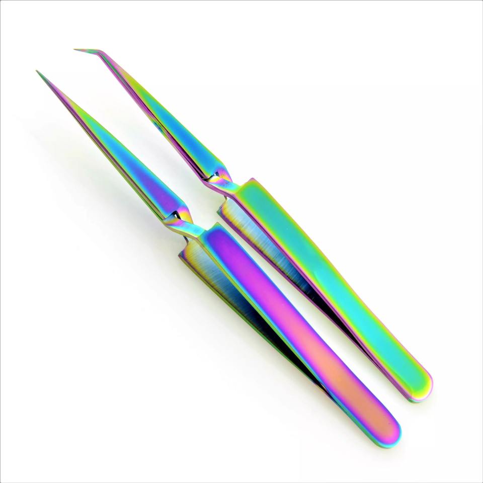 แหนบต่อขนตา,แหนบสแตนเลสเคลือบหลายสีรุ้งพลาสม่า12ซม. X ครอสแอคชั่นหัวแหลม