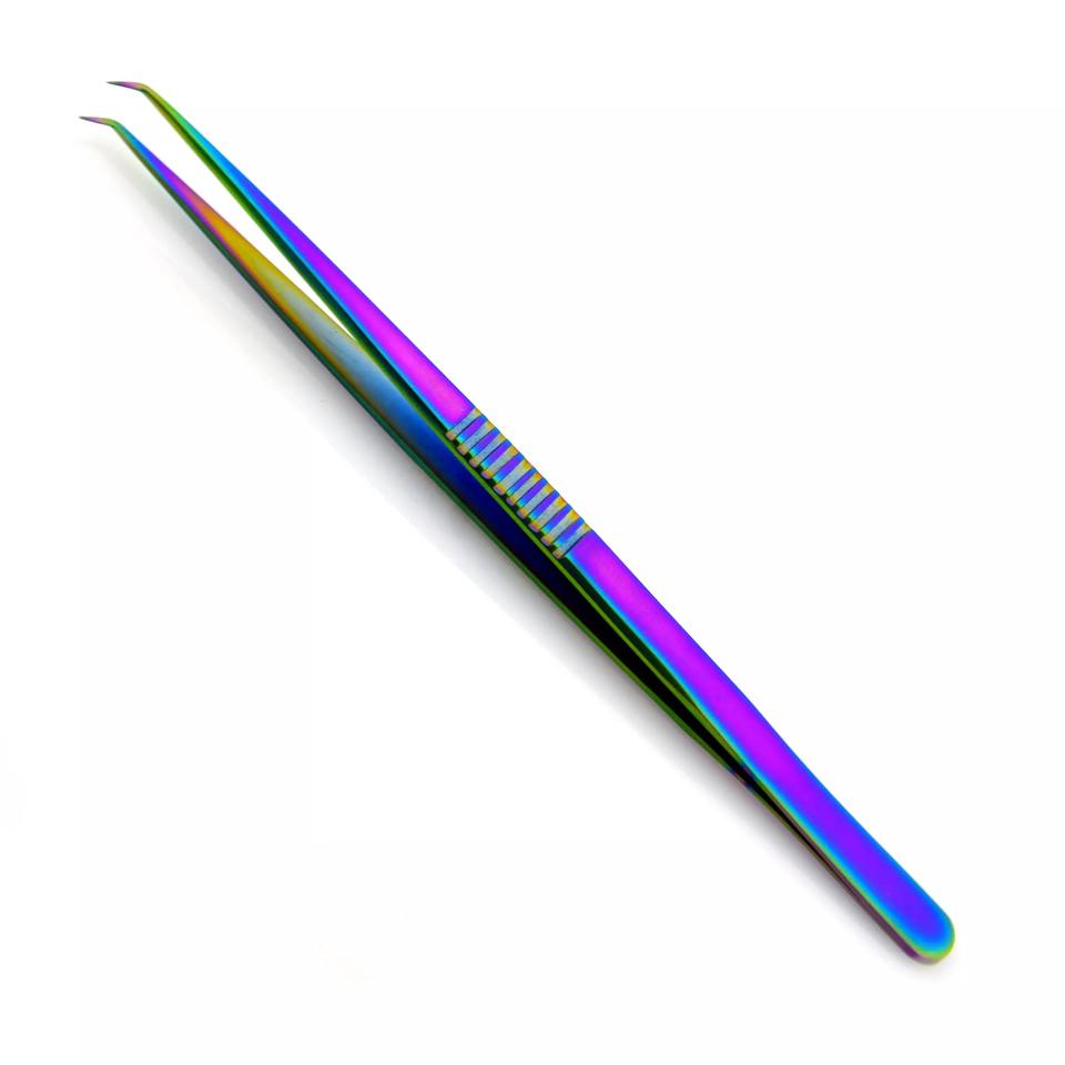 ที่มีคุณภาพระดับมืออาชีพต่อขนตาแหนบสแตนเลสหลายรุ้งพลาสม่าเคลือบ45องศา6มิลลิเมตรโค้งโค้งจุดที่คมชัด