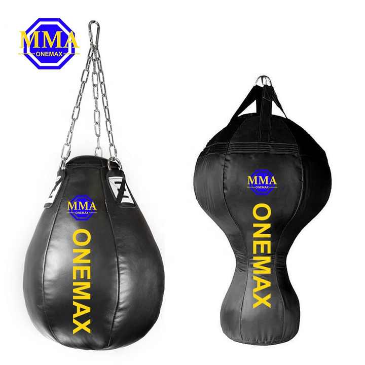 คุณภาพระดับมืออาชีพเตะมวยอุปกรณ์เจาะกระเป๋าหนัง Pu 100lb หนักลูกแพร์รูปร่างสีดำเจาะถุง