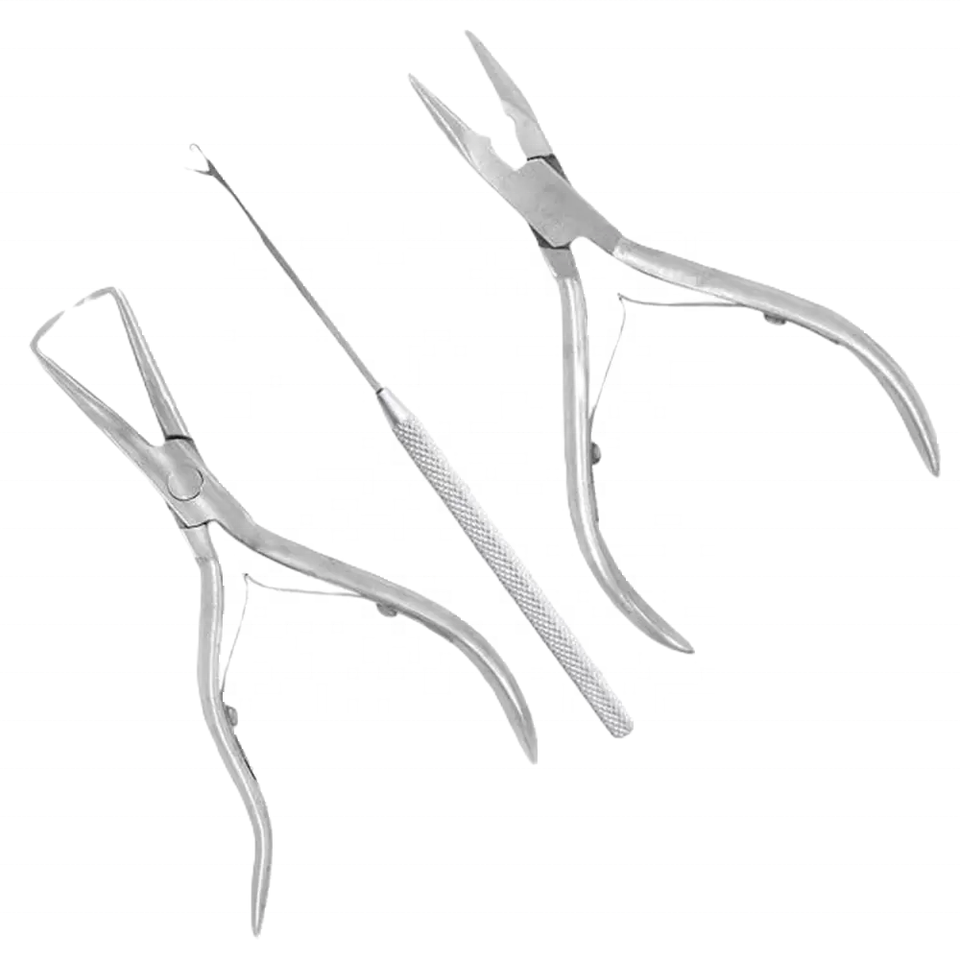 ชุดอุปกรณ์ต่อผมแบบเปลี่ยนได้อย่างมืออาชีพชุดอุปกรณ์คีมต่อผมทำจากสเตนเลสสตีลพร้อมเข็มตะขอและบรรจุภัณฑ์รักษ์โลก