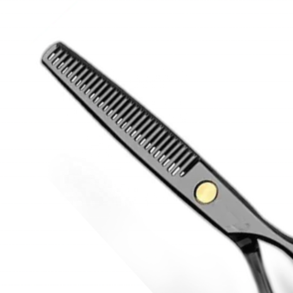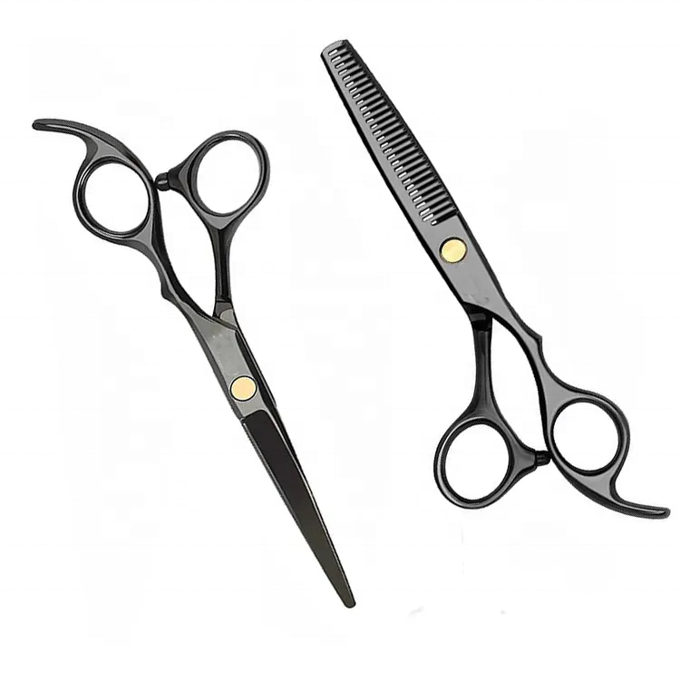 กรรไกรตัดผมสแตนเลสแบบเปลี่ยนได้คุณภาพสูงสำหรับช่างตัดผมเป็นมิตรกับสิ่งแวดล้อมเคลือบสีดำปลายแหลมชนิดบาง