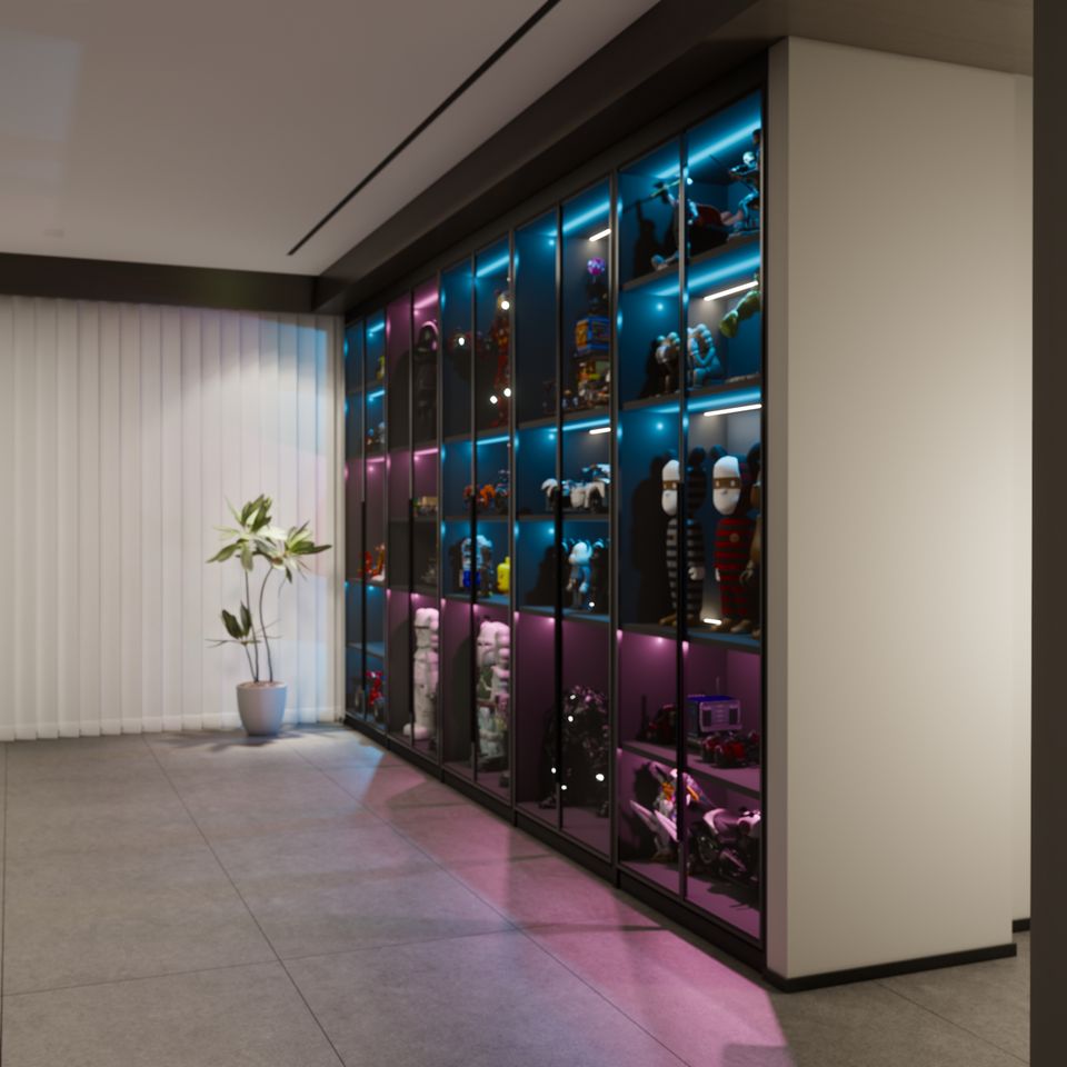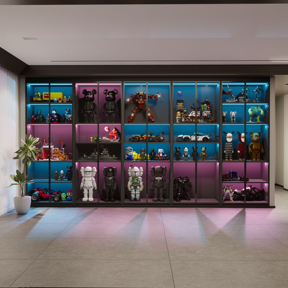 ตู้โชว์กระจกตกแต่งห้องมืออาชีพตู้ไฟ LED แบบกําหนดเองสําหรับรูปการกระทํา
