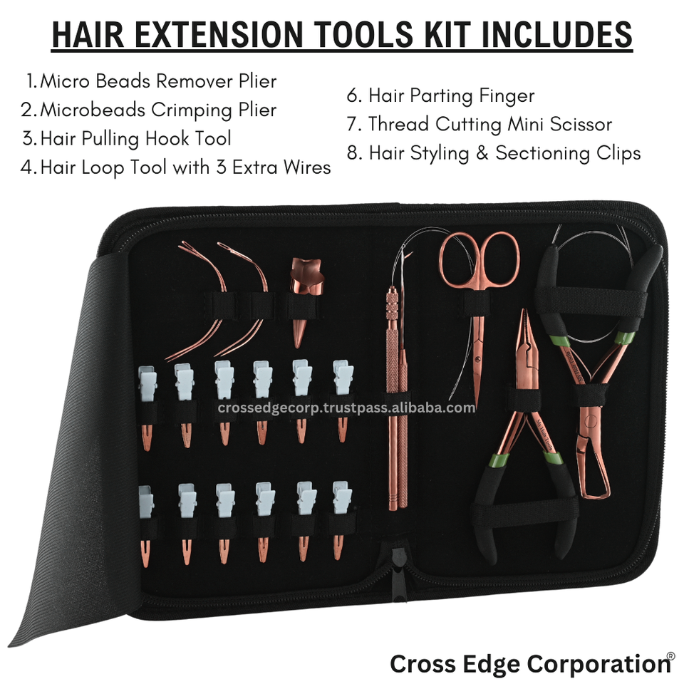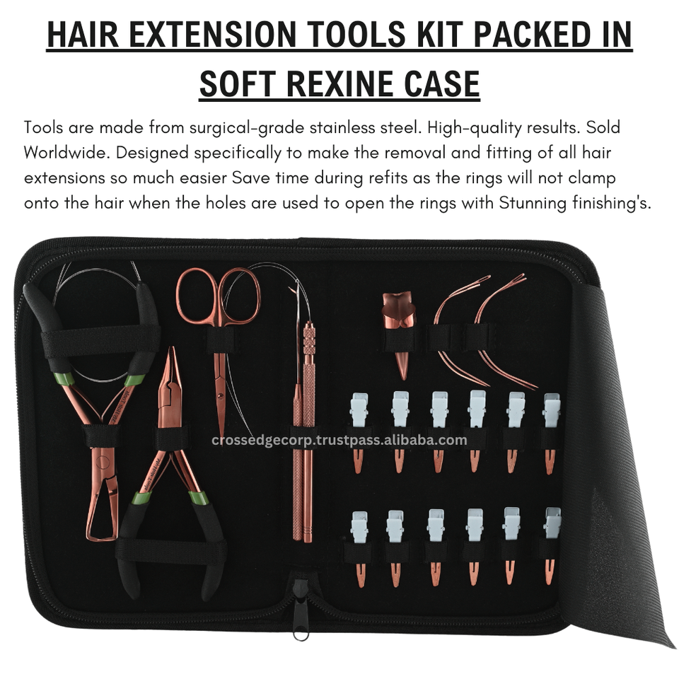 ชุดเครื่องมือต่อผม Rose Gold ระดับมืออาชีพประกอบด้วยที่คีบ Microbeads พร้อมคลิปจัดแต่งทรงผมและแยกส่วนผมสีดํา