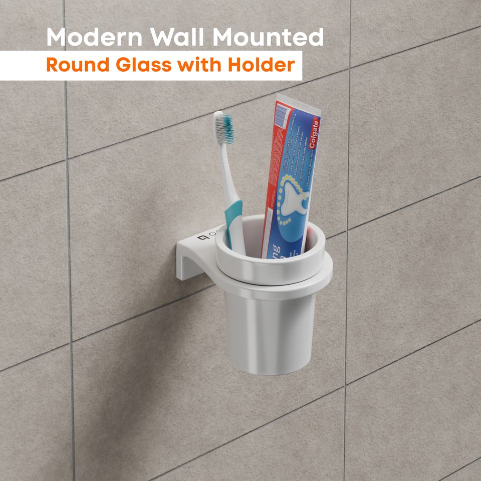 แก้วน้ำทรงกลมแบบมืออาชีพพร้อมที่แขวนโครเมียมติดผนังสำหรับห้องน้ำโรงแรมเชิงพาณิชย์และห้องพักสำหรับแขก