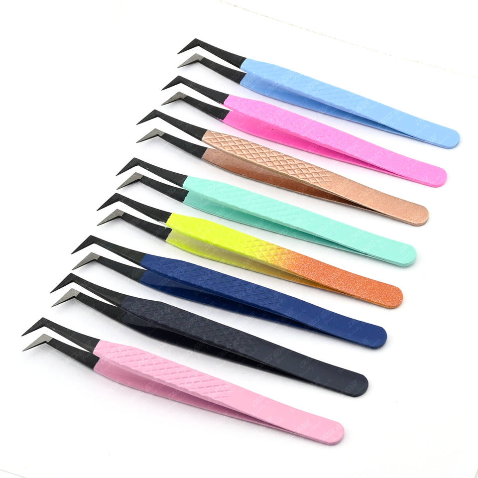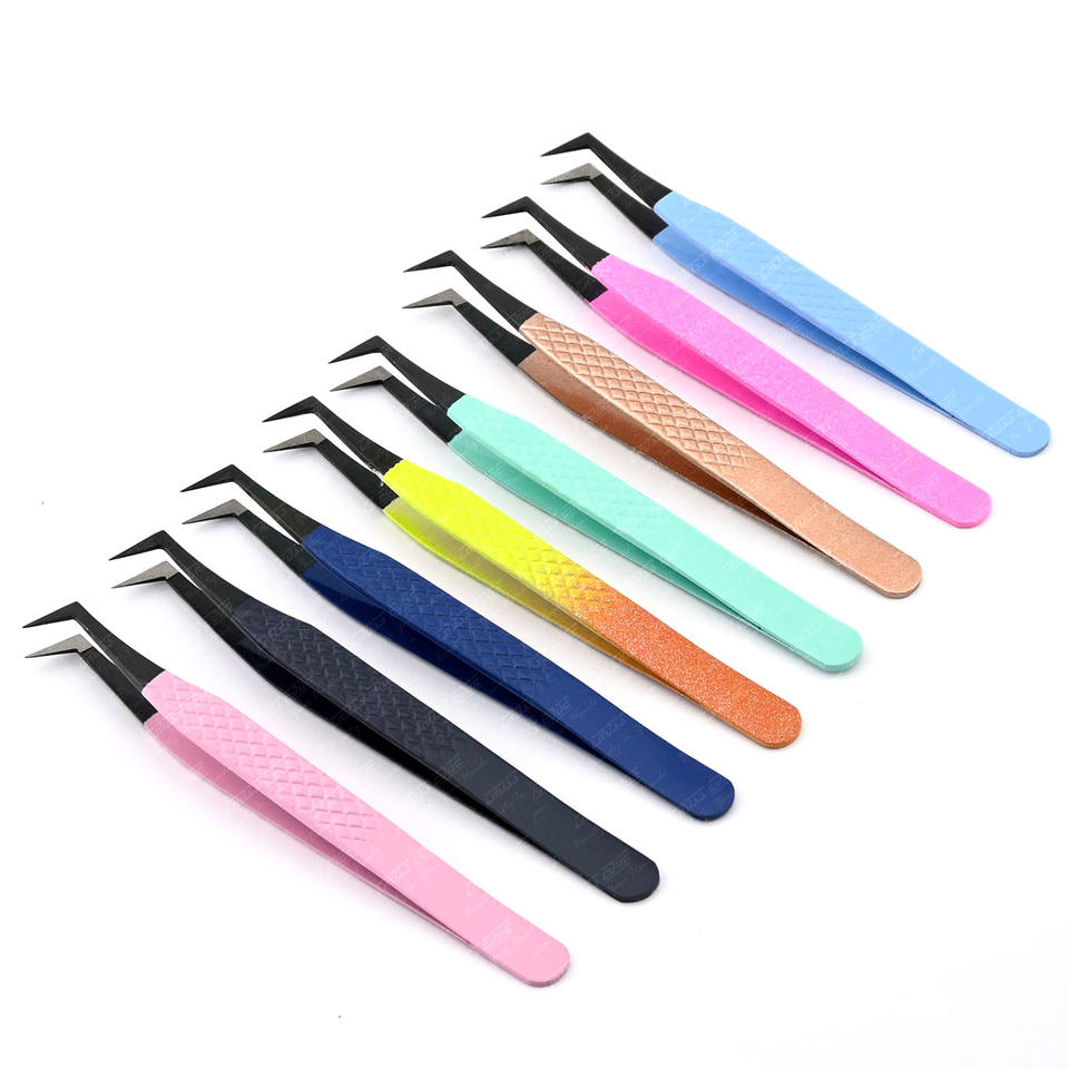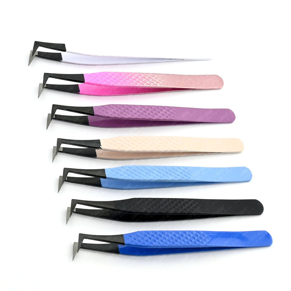แหนบขนตาปลอมสำหรับการต่อขนตาปลอมที่หนีบขนตาปลอมที่หนีบสแตนเลสสตีลไฟเบอร์กันลื่นผ่านการทดสอบด้วยมือแล้วระดับมืออาชีพ