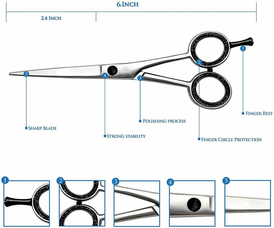 กรรไกรตัดผมสแตนเลสสำหรับช่างตัดผมมืออาชีพด้ามจับเซรามิกปลายทื่อแหลมอุปกรณ์แต่งผมเพื่อความงาม