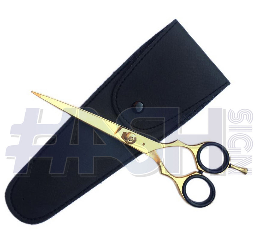 กรรไกรตัดผมสำหรับร้านตัดผมมืออาชีพพร้อมใบมีดสีทองคมสำหรับตัดผมและกำจัดขนบนใบหน้า