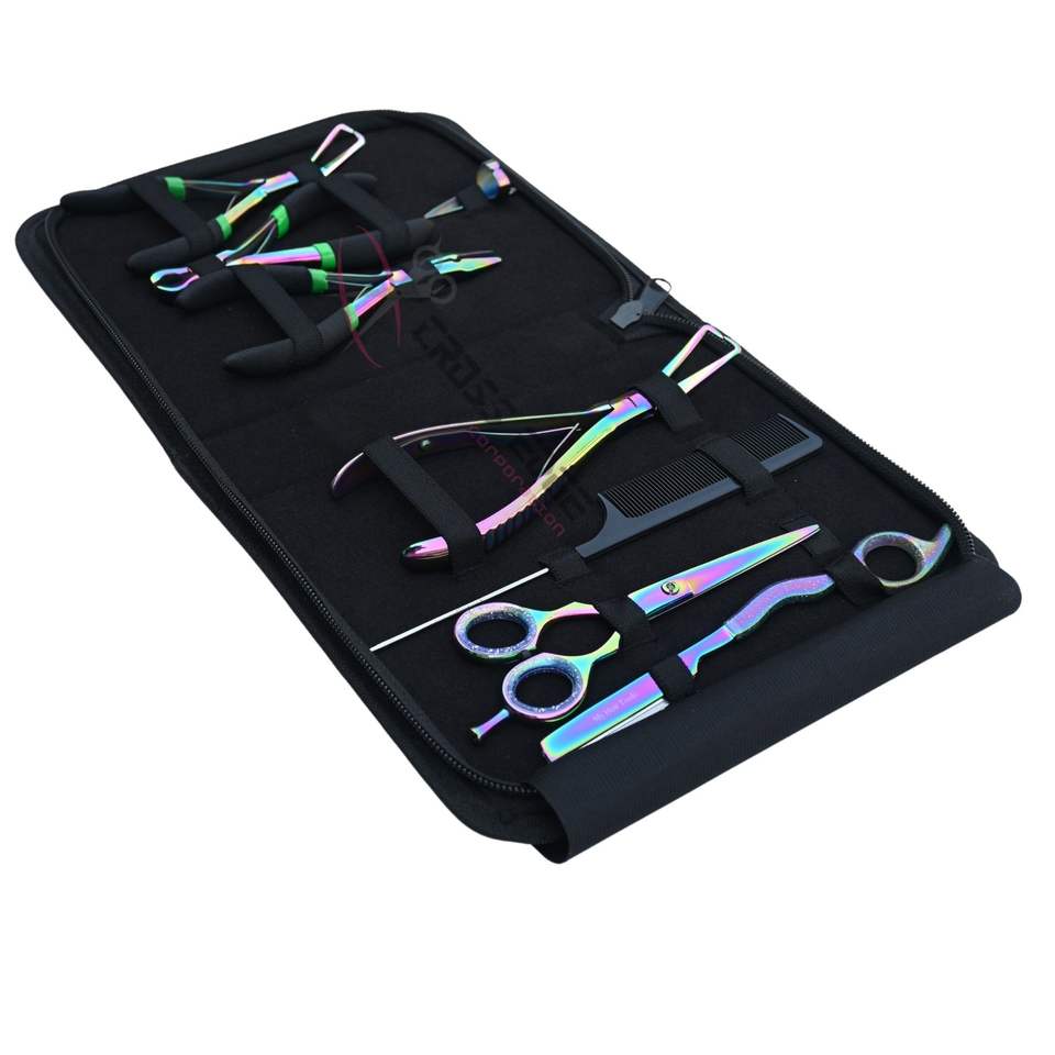 ชุดอุปกรณ์ต่อผมมืออาชีพ รุ่นเรนโบว์ ประกอบด้วยกรรไกรสแตนเลส คีมต่อผม ที่แสกผม และที่ตัดผม