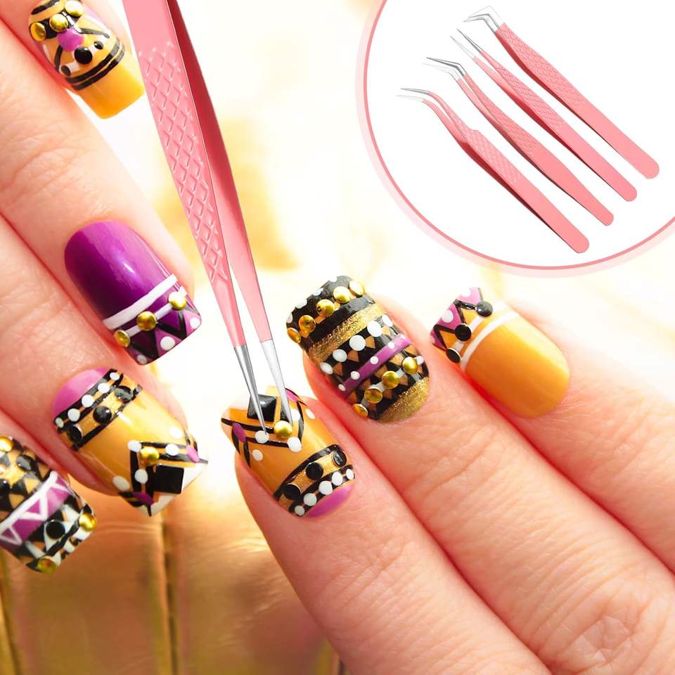 ชุดแหนบถอนขนตาสแตนเลส4ชิ้นพร้อมปลายไฟเบอร์90และ45องศาสำหรับการต่อขนตา