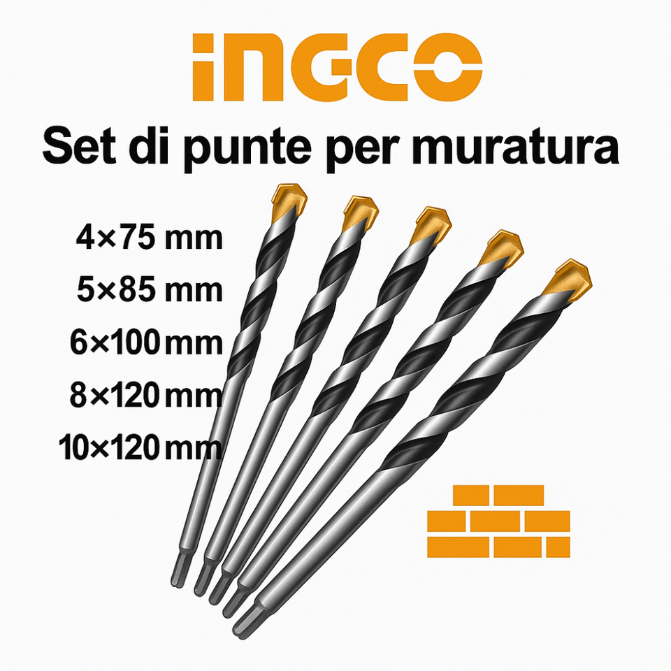 Professional Set of 5 Steel Drill Bits for Masonry & Concrete Precise Professional Drilling