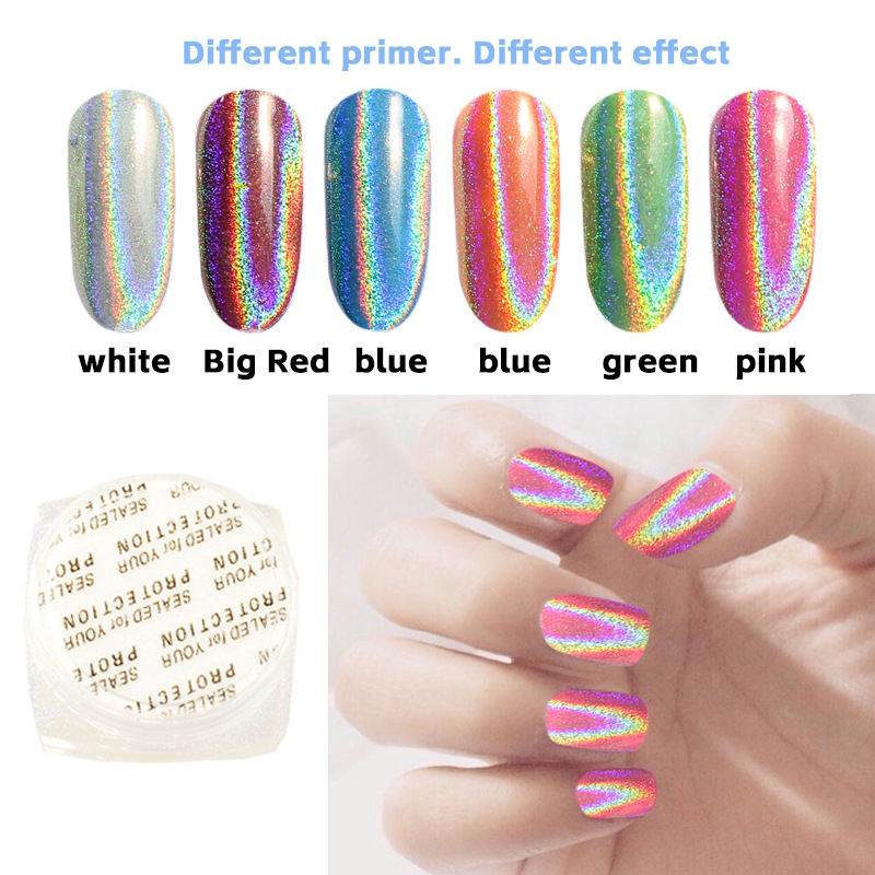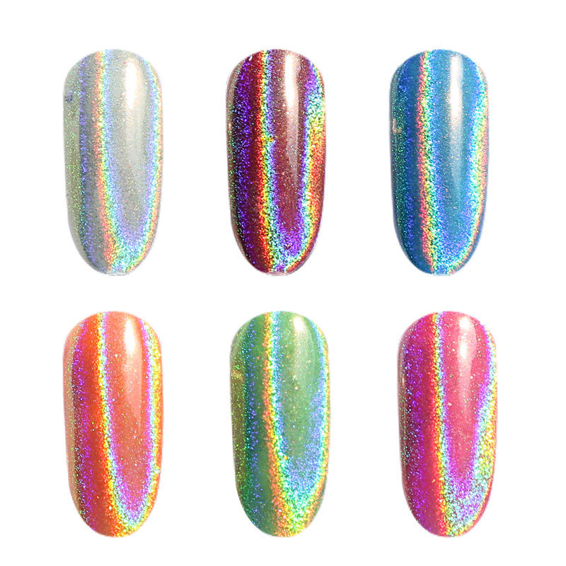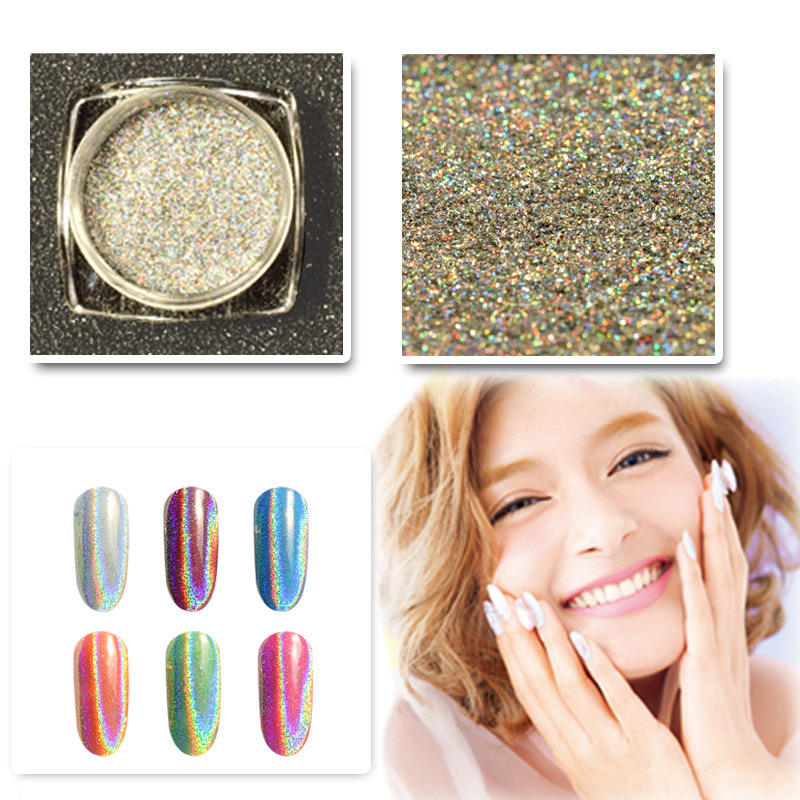ผงสีเงินเลเซอร์เคลือบด้วยไฟฟ้าเจ็ดสีสำหรับทาสีเล็บแบบ DIY