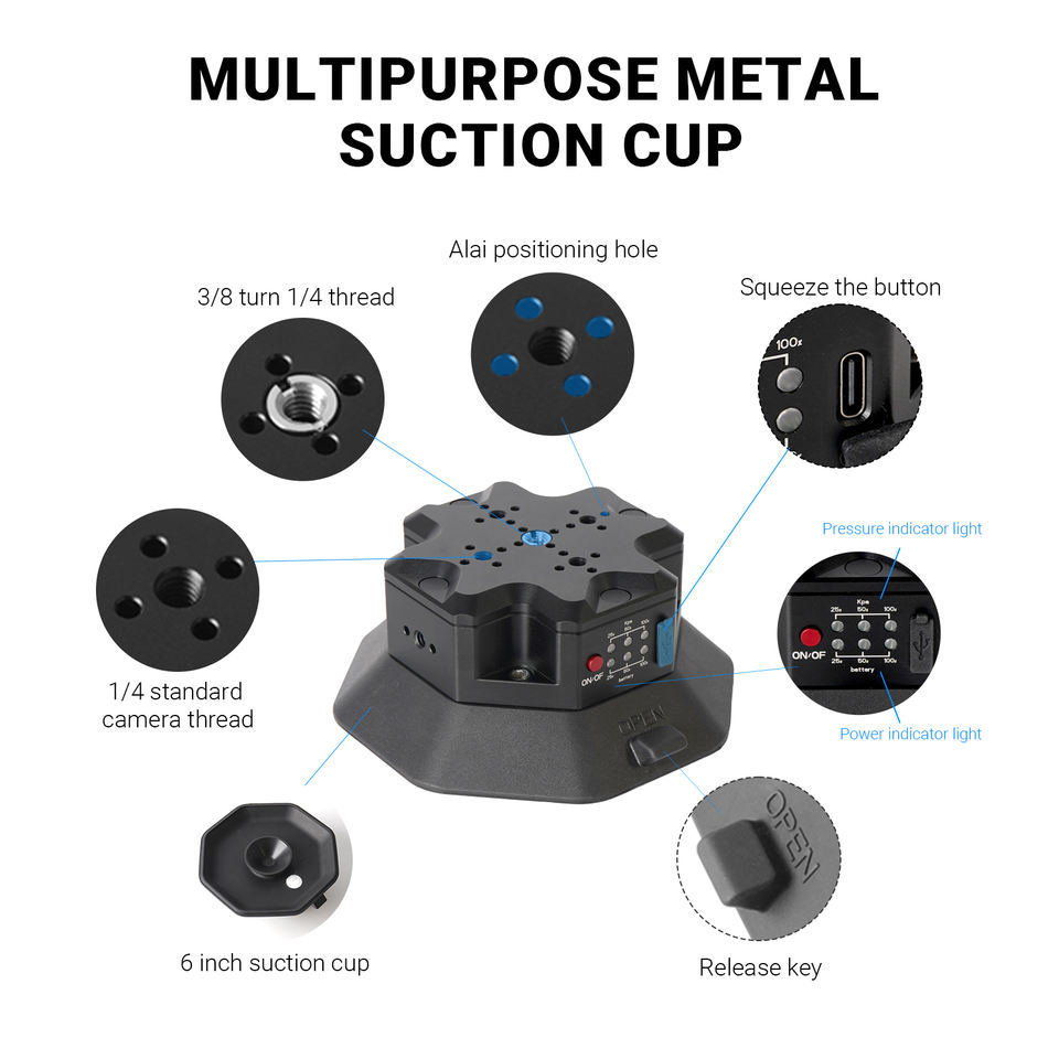 ขาตั้งกล้องแบบสุญญากาศติดรถยนต์ ขนาด 6 นิ้ว สำหรับมืออาชีพ ใช้งานร่วมกับ DJI Pocket 3/กล้องแอคชั่นได้
