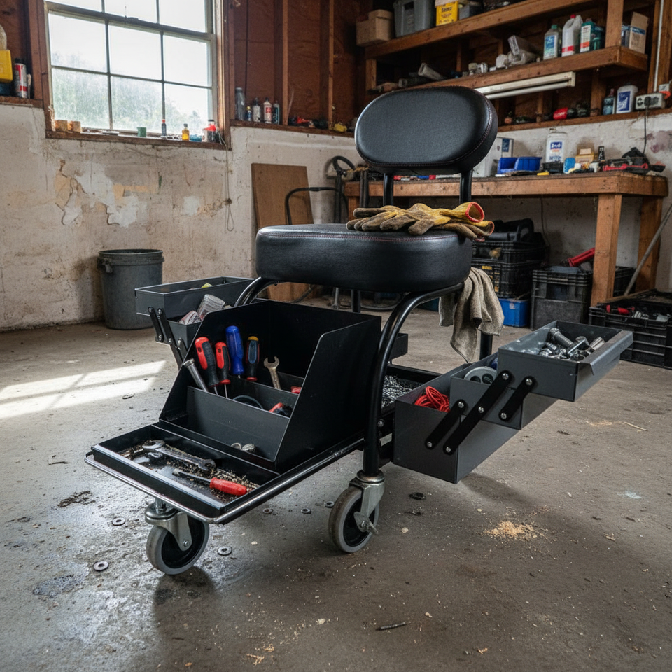 Shop Seat with Expandable Side Trays.ลักษณะ