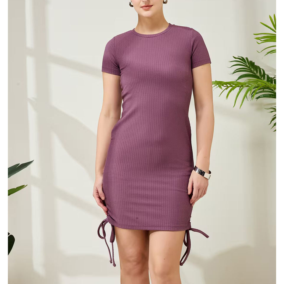ชุดเดรสทรงเข้ารูปแขนสั้นแบบมีริบ ผ้าถัก ดีไซน์สั่งทำได้ สำหรับผู้ค้าส่ง