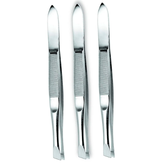 แหนบสแตนเลสสำหรับตัดขนตาและขนคิ้ว ปลายแหลมตรง ด้ามจับมีลาย ใช้ซ้ำได้ ทันสมัย เป็นมิตรกับสิ่งแวดล้อม