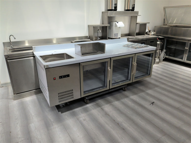 เคาน์เตอร์บาร์ชงชาไข่มุกสแตนเลสแบบมืออาชีพ ระบบทำความเย็นโดยตรงอุณหภูมิเดียว