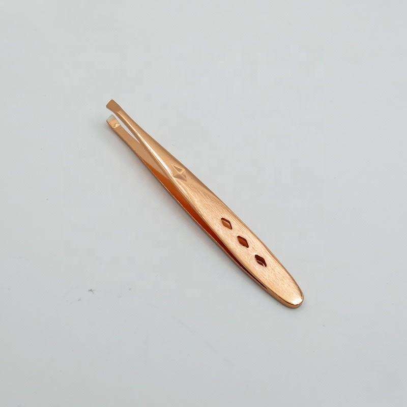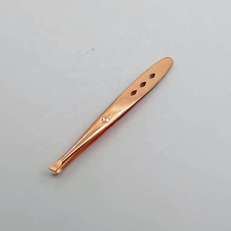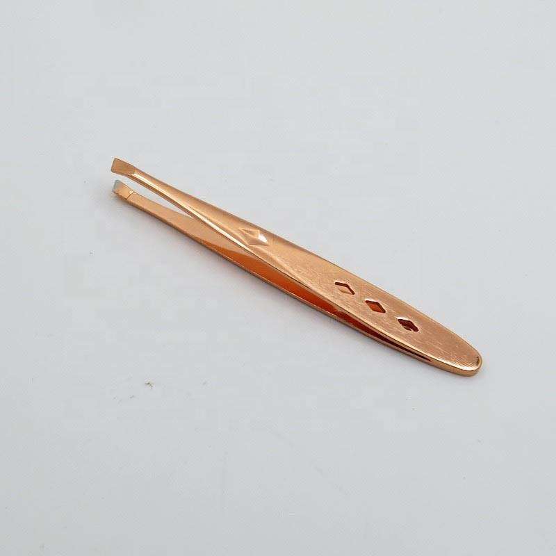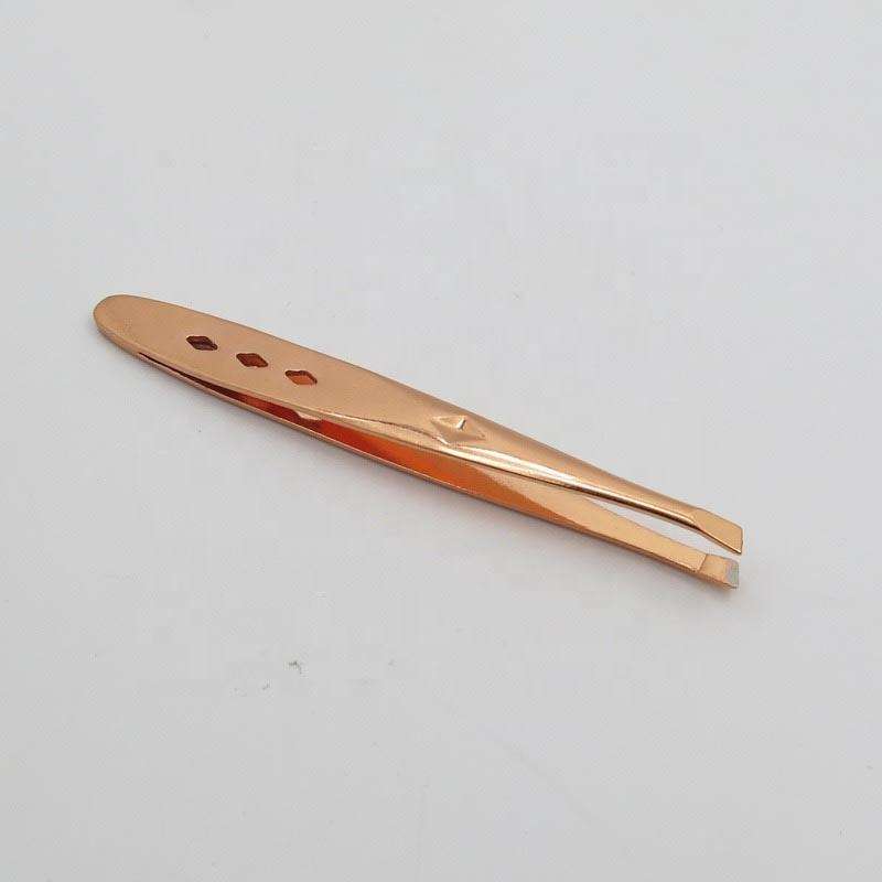 แหนบคิ้วปลายเอียงแบบมืออาชีพอุปกรณ์เสริมความงามมีดีไซน์สีโรสโกลด์สำหรับใช้ในบ้านและร้านเสริมสวย