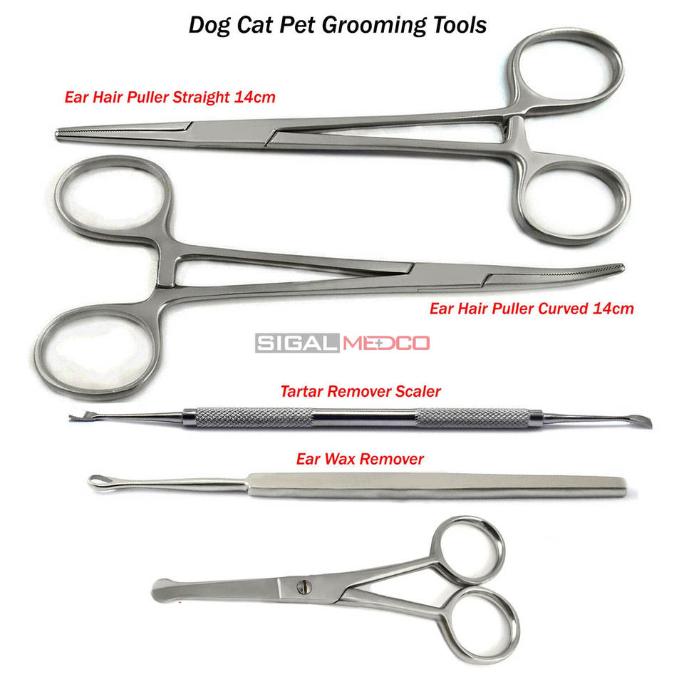 ชุดอุปกรณ์กรูมมิ่งสัตว์เลี้ยงขนาดเล็กแบบมืออาชีพ 5 ชิ้น สำหรับสุนัขและแมว กำจัดขนหู กำจัดคราบหินปูน กรรไกรตัดขนอย่างแม่นยำเพื่อความปลอดภัย