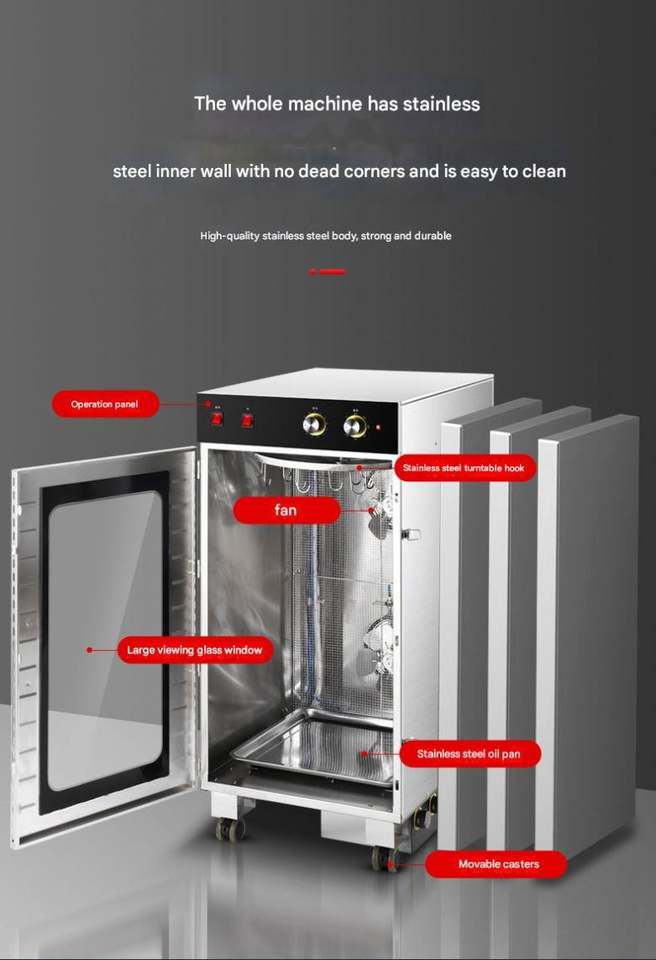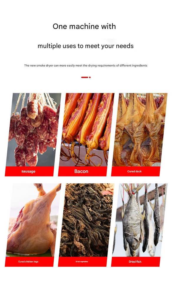 เครื่องอบแห้งอาหารขนาดใหญ่ คุณภาพสูง พร้อมฟังก์ชั่นรมควันแบบมืออาชีพ สำหรับทำเบคอน เนื้อวัว เนื้อหมู ไส้กรอก ควบคุมอุณหภูมิและตั้งเวลาได้