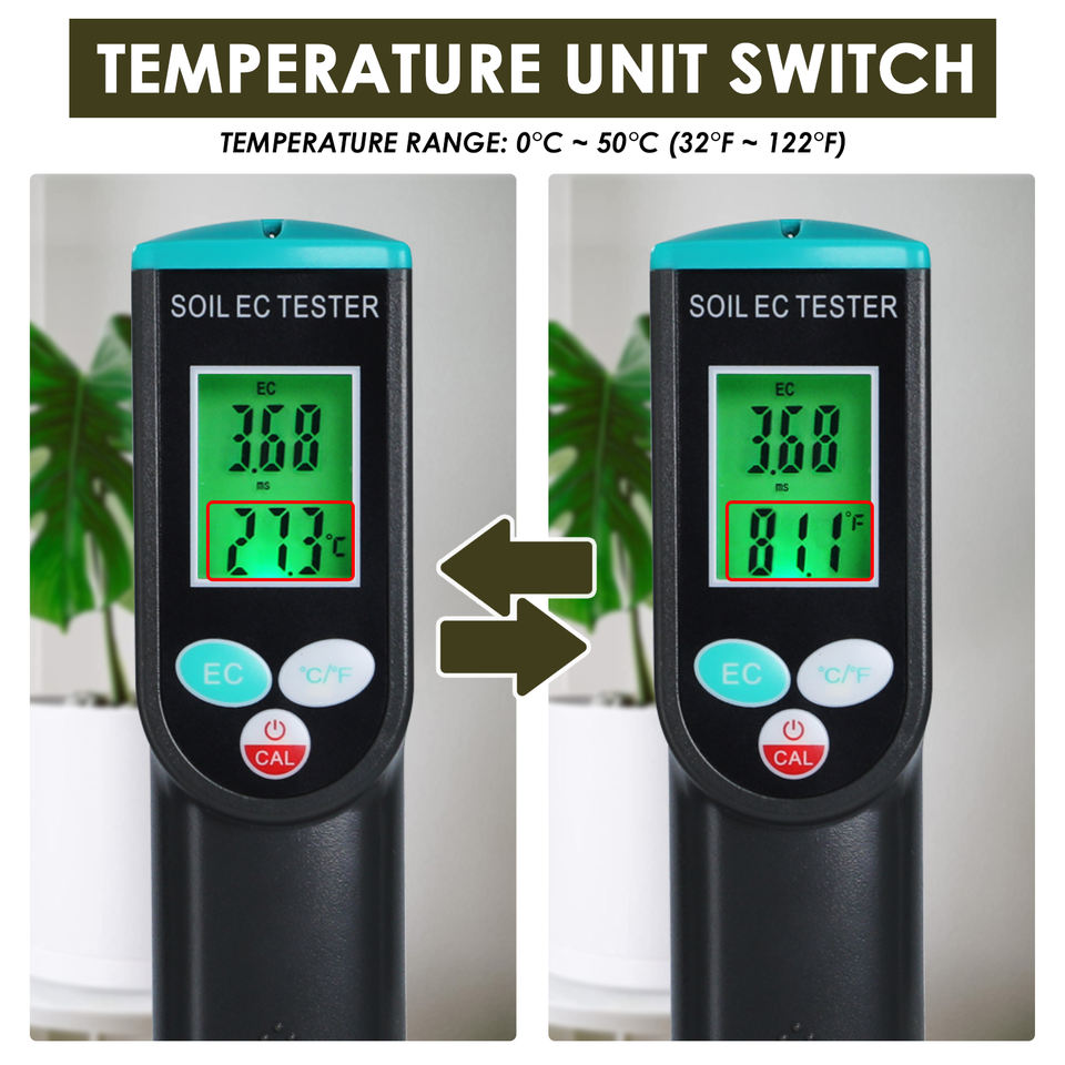 เครื่องวัดค่าการนำไฟฟ้าของดินแบบมืออาชีพ ช่วงการวัด 0-4.00mS/cm, IP67, เครื่องวัดอุณหภูมิและความเค็ม สำหรับนักเกษตรและนักวิจัยด้านสิ่งแวดล้อม