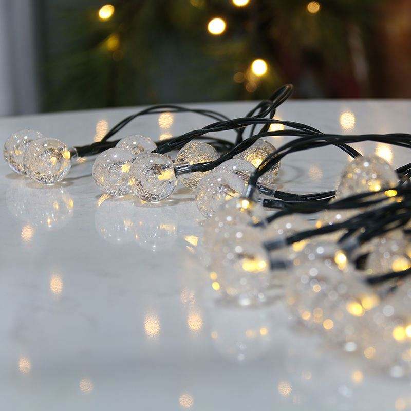 ไฟประดับคริสต์มาสแบบ LED พลังงานแสงอาทิตย์ระดับมืออาชีพ รูปทรงลูกบอล (เส้นผ่านศูนย์กลาง 2.5 ซม.) พร้อมใบรับรอง CE มาตรฐาน IP44 ความยาว 6.9 ม.