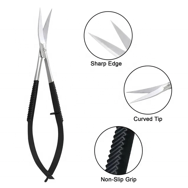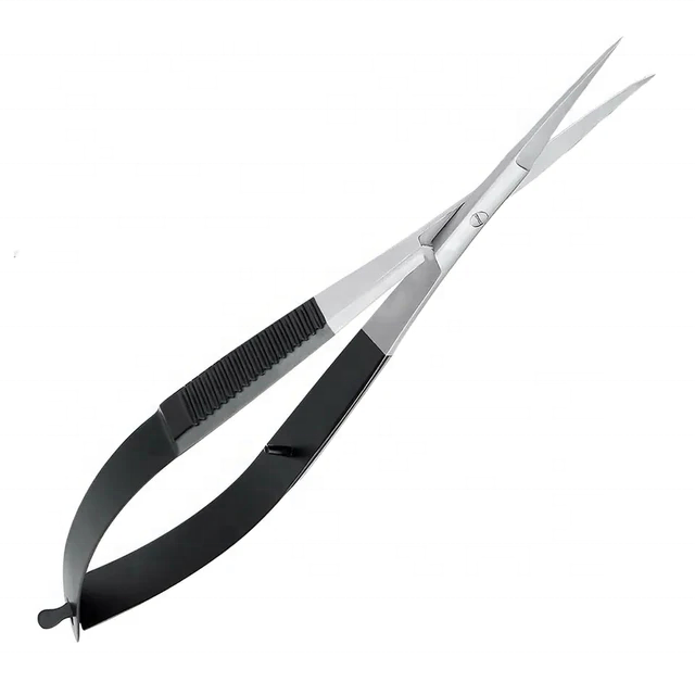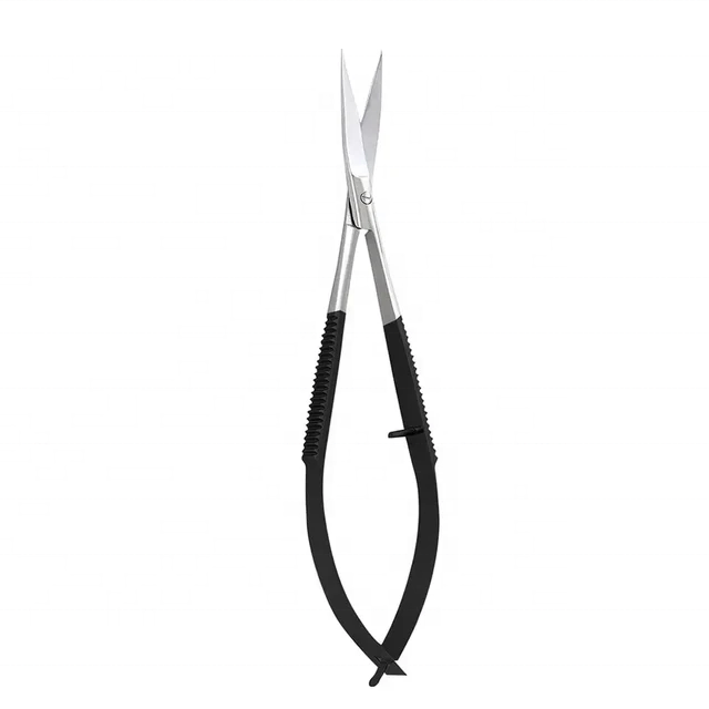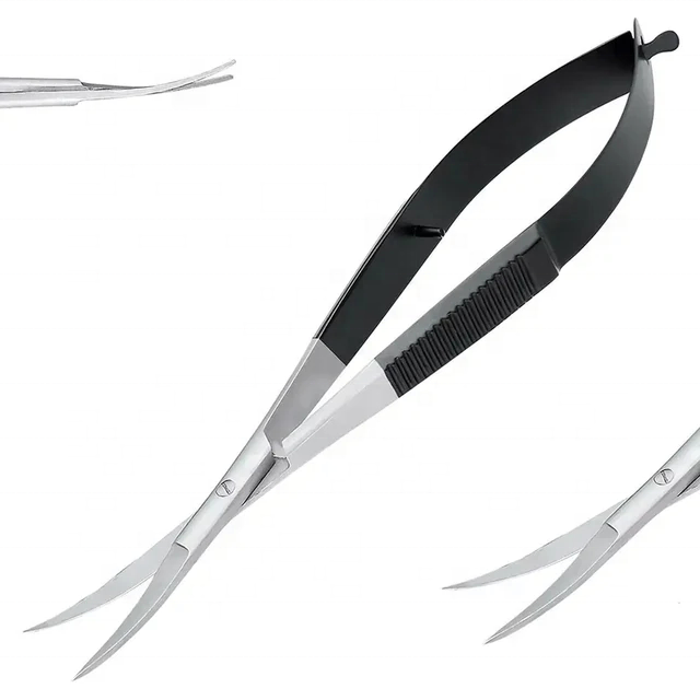 กรรไกรสปริงแบบมืออาชีพกรรไกรสเตนเลสสีดำสีเงินงานฝีมือเล็มคิ้ว