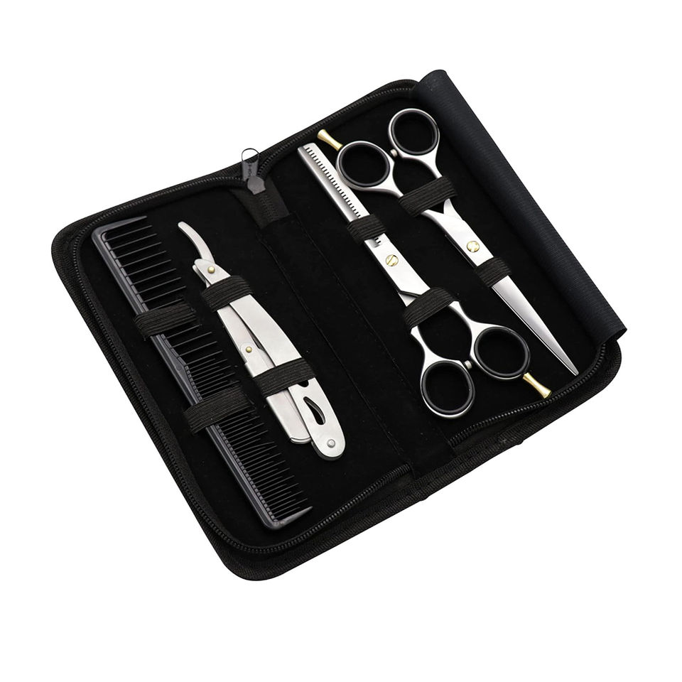 ชุดกรรไกรตัดผมสแตนเลสสำหรับมืออาชีพ พร้อมมีดโกนตรงสำหรับคนถนัดขวา สำหรับตัดผม จัดแต่งทรงผม ร้านเสริมสวย ร้านตัดผม