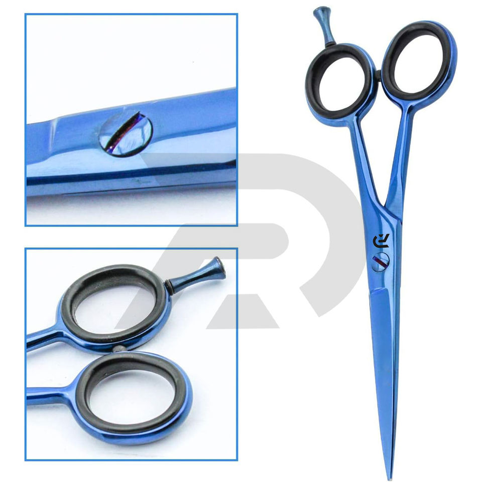 กรรไกรตัดผมสแตนเลสมีด้ามจับเซรามิกคมดีไซน์สีน้ำเงินสำหรับใช้ในร้านตัดผมอุปกรณ์ความงาม