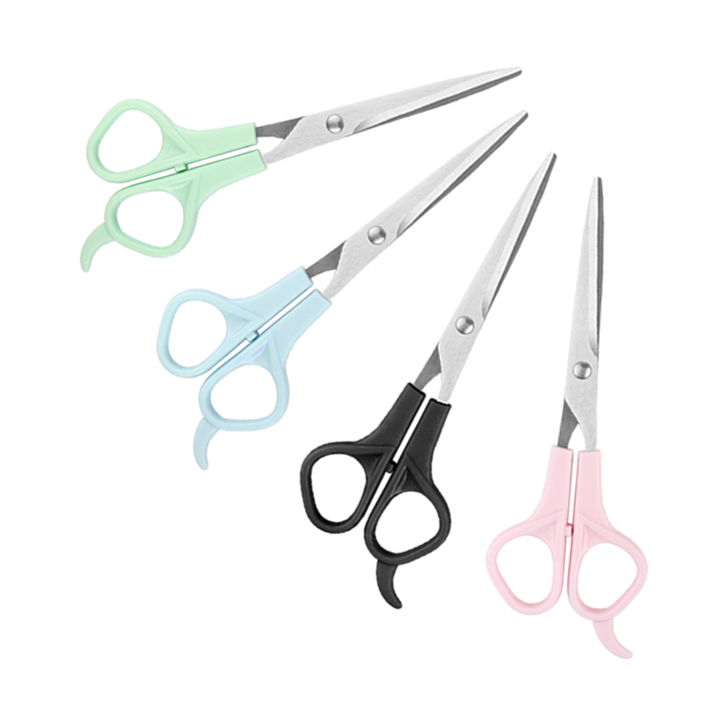 กรรไกรตัดผมสเตนเลสแบบมืออาชีพด้ามจับพลาสติกขอบเรียบกรรไกรสำหรับใช้ในครัวเรือน