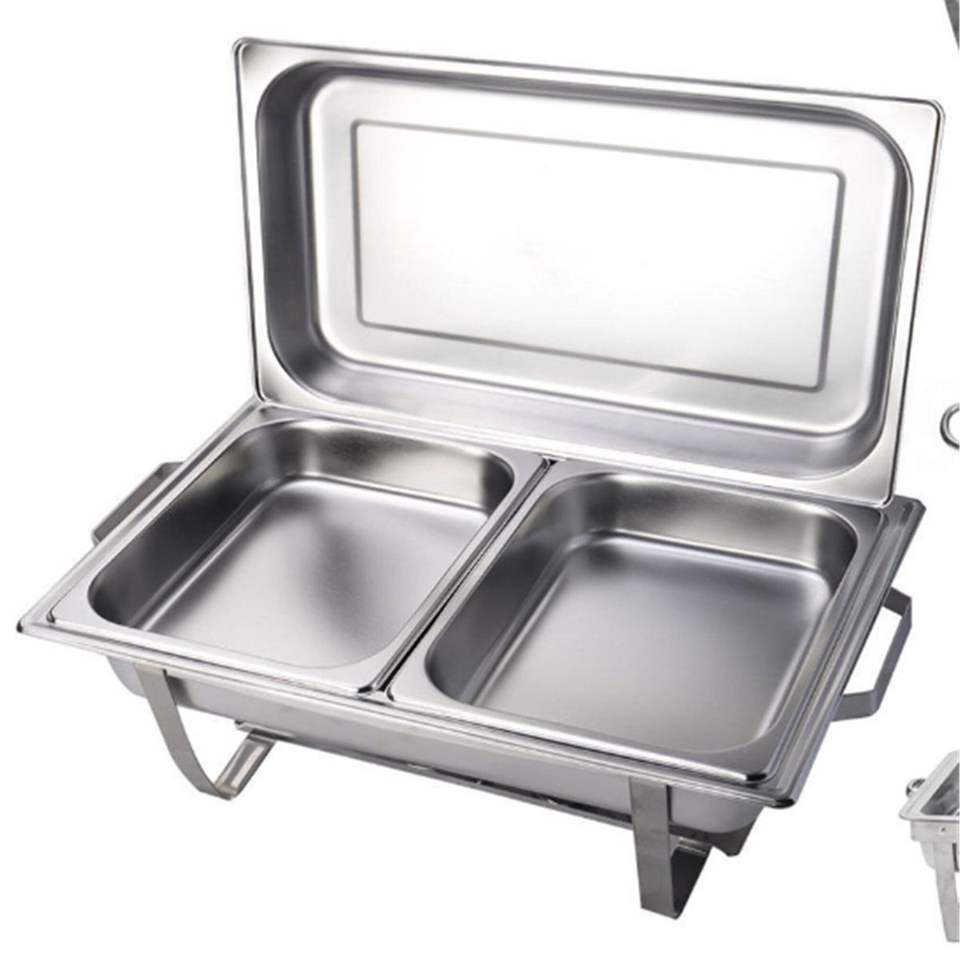 ถาดอุ่นอาหารบุฟเฟ่ต์สแตนเลสแบบมืออาชีพ พร้อมฝาแก้วสำหรับอุปกรณ์จัดเลี้ยง