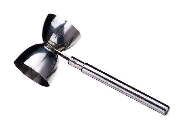 จิกเกอร์ค็อกเทลสแตนเลสอย่างดีพร้อมด้ามจับไม้ ถ้วยตวงสำหรับบาร์ | อุปกรณ์บาร์ระดับพรีเมียม | ขายส่ง